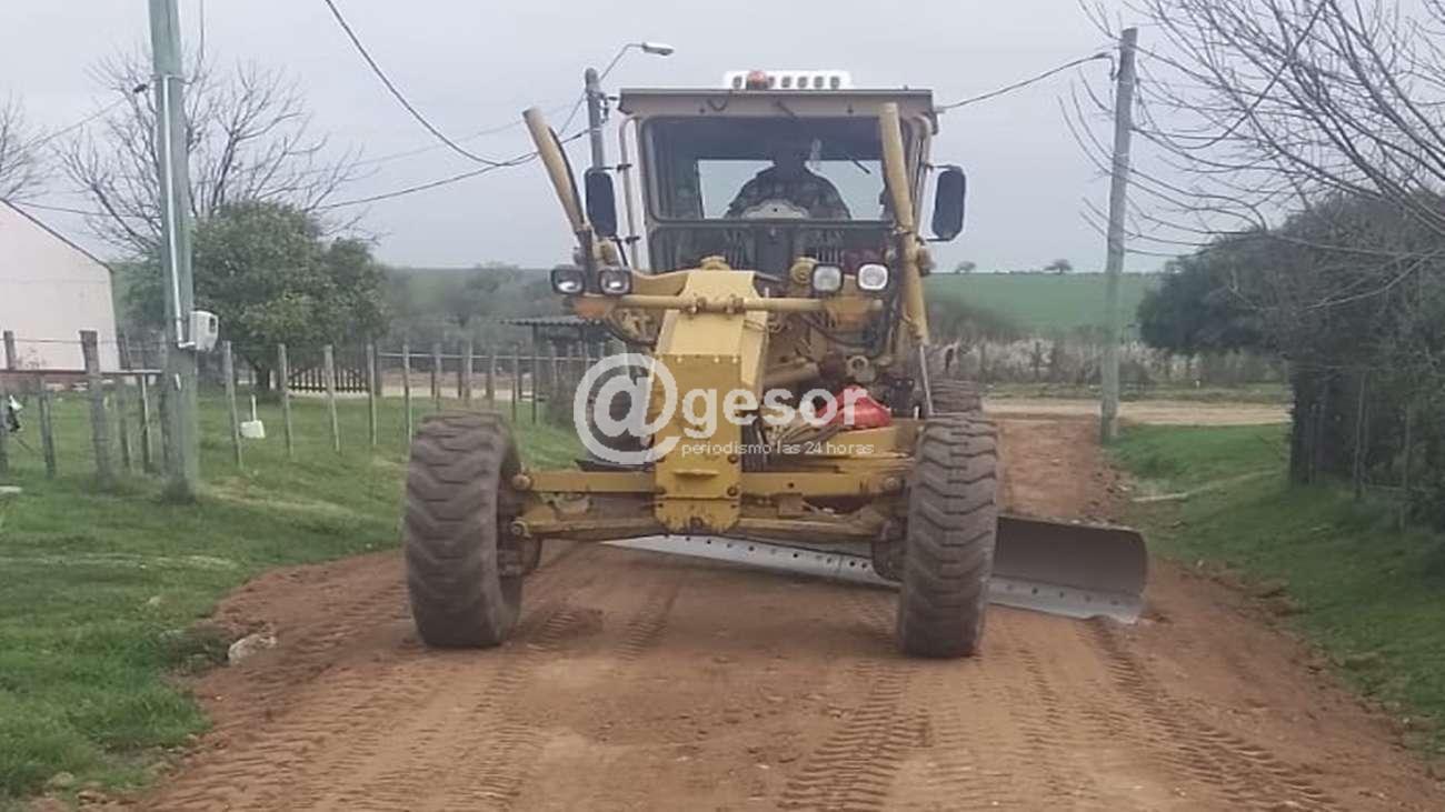 En el inicio, las tareas están a cargo del Dpto de Obras que ya interviene en las 12 cuadras de la localidad, realizando la mejora de la base, recarga y compactación con material granular, utilizándose balasto.