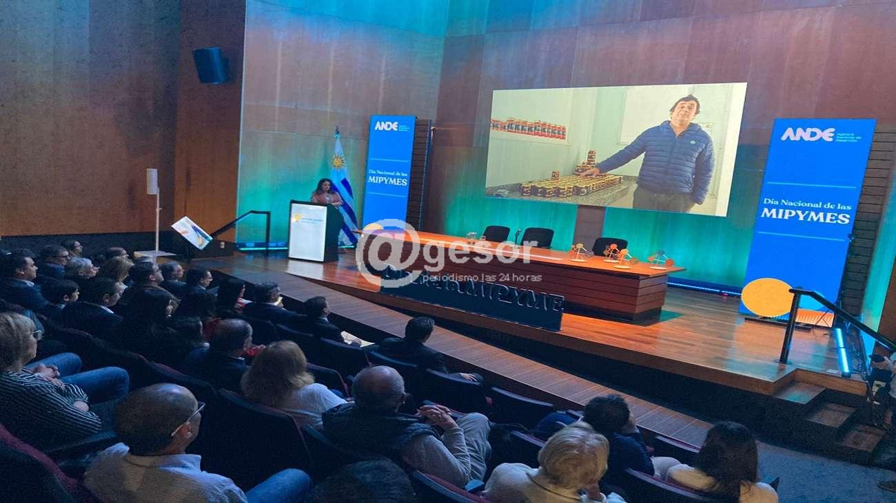 Luego, se dieron a conocer a las empresas ganadoras del Premio a la Mipyme del Año en 4 categorías. En la categoría Emprendimientos ganó la Cooperativa de Apicultores de Artigas, integrada por 13 socios. La Mipyme lnnovadora del Año fue InData de Treinta y Tres, que trabaja en la digitalización de pymes y en el desarrollo de soluciones tecnológicas para el sector agropecuario. El premio a la Mipyme Tradicional fue para la Carpintería Walder Rodríguez de Tacuarembó, una empresa familiar que involucra a 5 generaciones. En la categoría Mipyme Sustentable ganó el Rancho Gallinas Felices, también de Tacuarembó, que produce huevos agroecológicos libres de jaula con gallinas en pastoreo el 100% del tiempo.