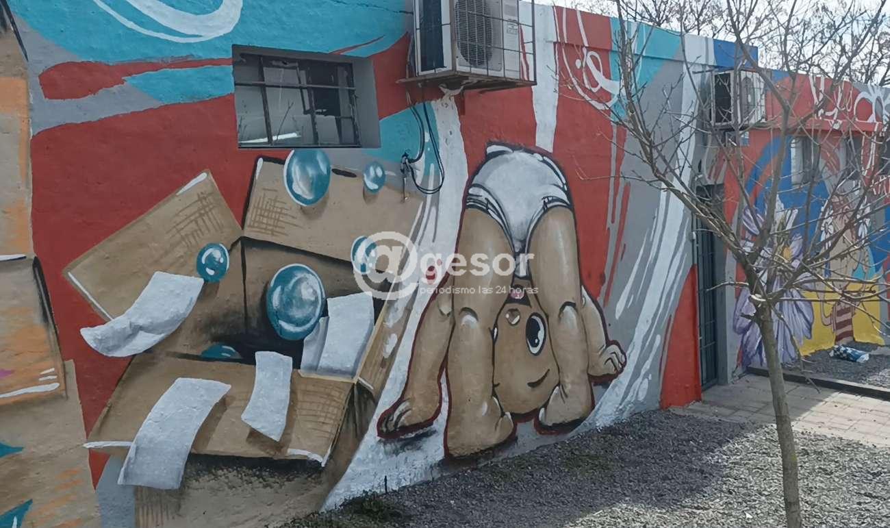 Niko Castro dijo que la temática fue en conjunto, "queríamos tener en cuenta el tema de los sentidos, es lo que se ve, tenemos la flor en la parte del olfato, en el sonido la música, una frutilla como parte del gusto, también habrá pintada vinculada a lo visual y al tacto, la idea era laburar los sentidos, como un lindo disparador, algo nuevo, veníamos con otras historias, allá cuando lo pintamos hace 10 años de un parque de diversiones, pero esta vez lo quisimos encarar diferente con las maestras y referentes del centro, que fueron quienes nos tiraron la idea".