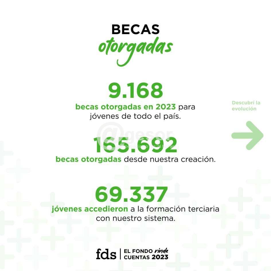 Este año, la institución otorga a 9.168 jóvenes partidas de apoyo económico de hasta $ 11 320, ascendiendo a $ 900 000 000 el monto destinado a las becas. Casi el 90 % de los beneficiarios son del interior, mientras que más del 10 % reside en Montevideo. Más del 90 % de los apoyos fueron a estudiantes de la Udelar. Para el 91 % de los beneficiarios, se trata de la primera generación de su familia en ingresar a la educación terciaria.