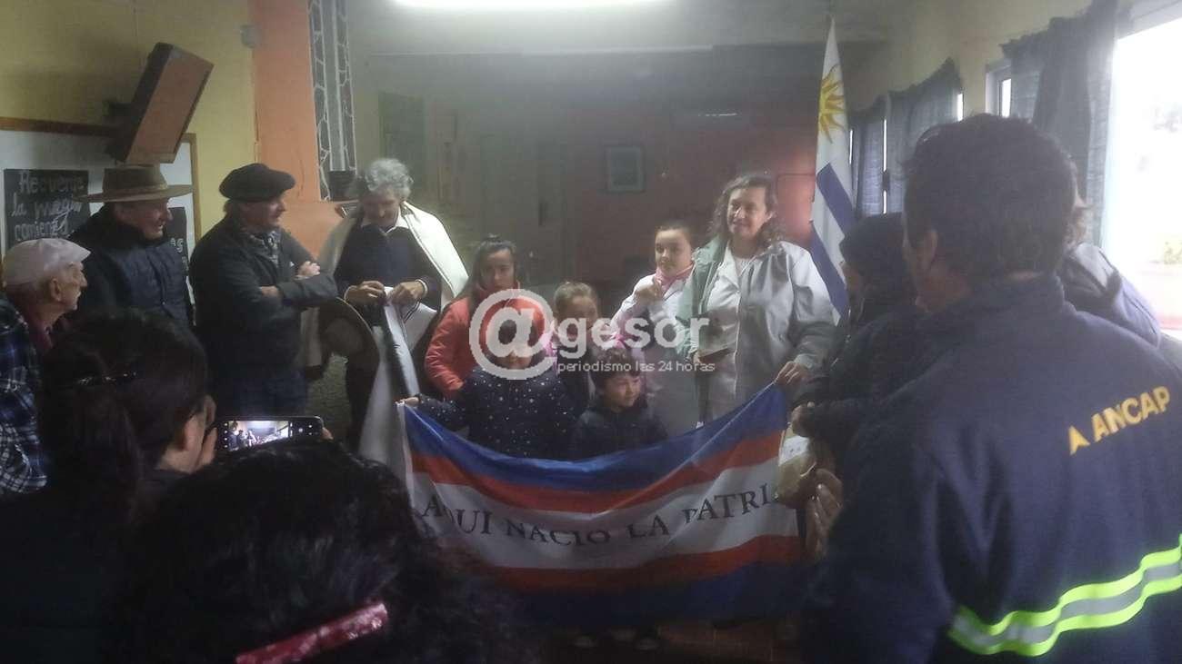 Como es habitual en todas las escuelas rurales por donde pasa la marcha, se entrega un reconocimiento así como un botiquín de primeros auxilios y una bandera de Soriano, lo cual se cumplió en la escuela Nº 13. Además se hizo un homenaje al marchero Glorialdo “Brasilero” Manzonil por ser el más veterano de los participantes de la marcha