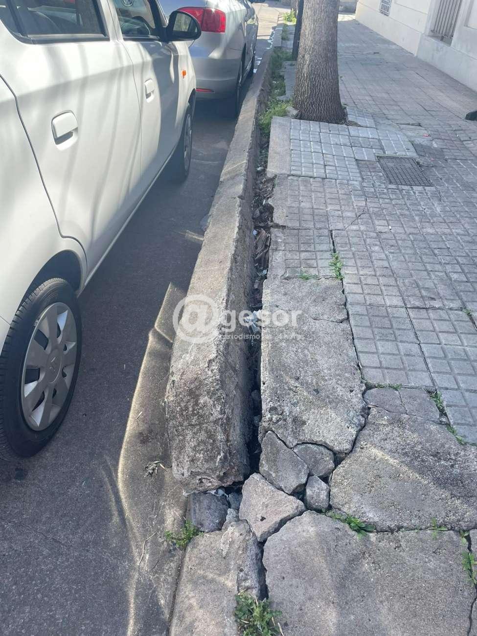Además en la vereda frente al sector del estacionamiento de autos hay un tramo muy roto con yuyos.