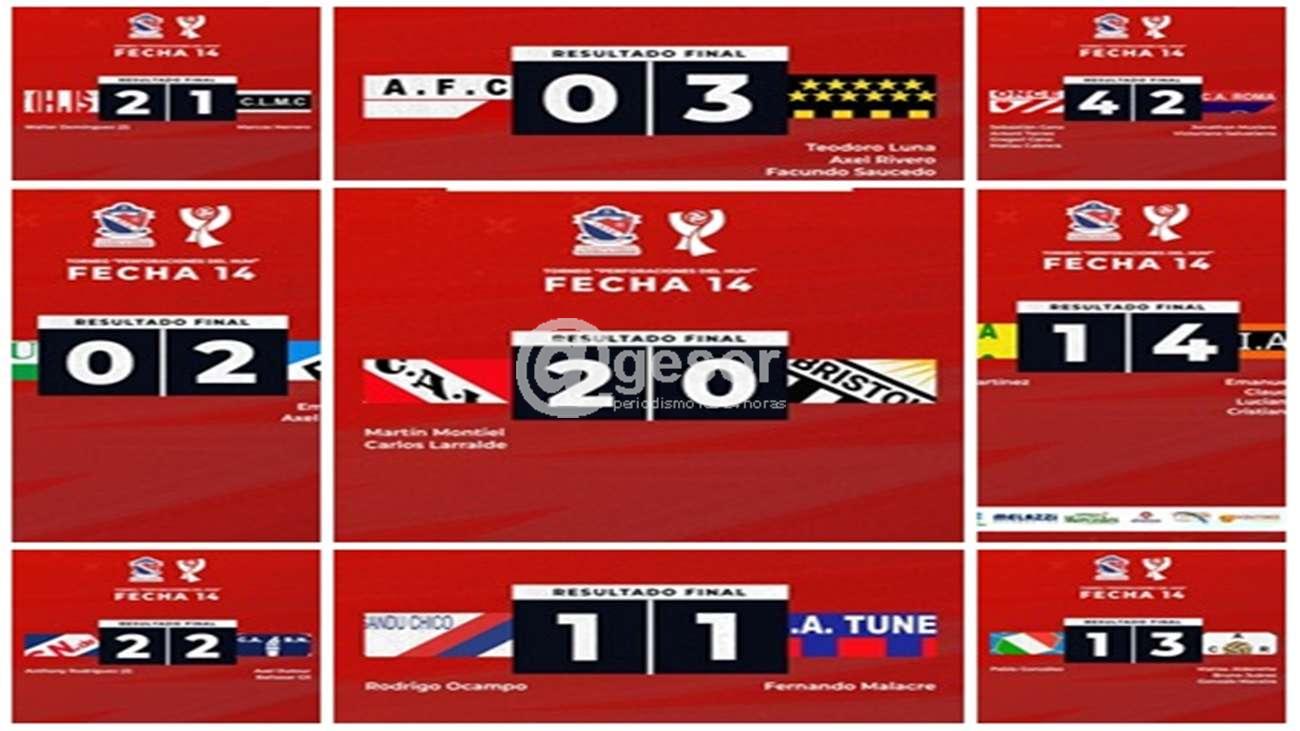 Treinta y un goles se marcaron este domingo en la 14ª fecha del fútbol mercedario. Perdió Bristol, el líder de la tabla, ganaron Independiente y Juventud Soriano, acortando distancia; y solamente se registraron dos empates.