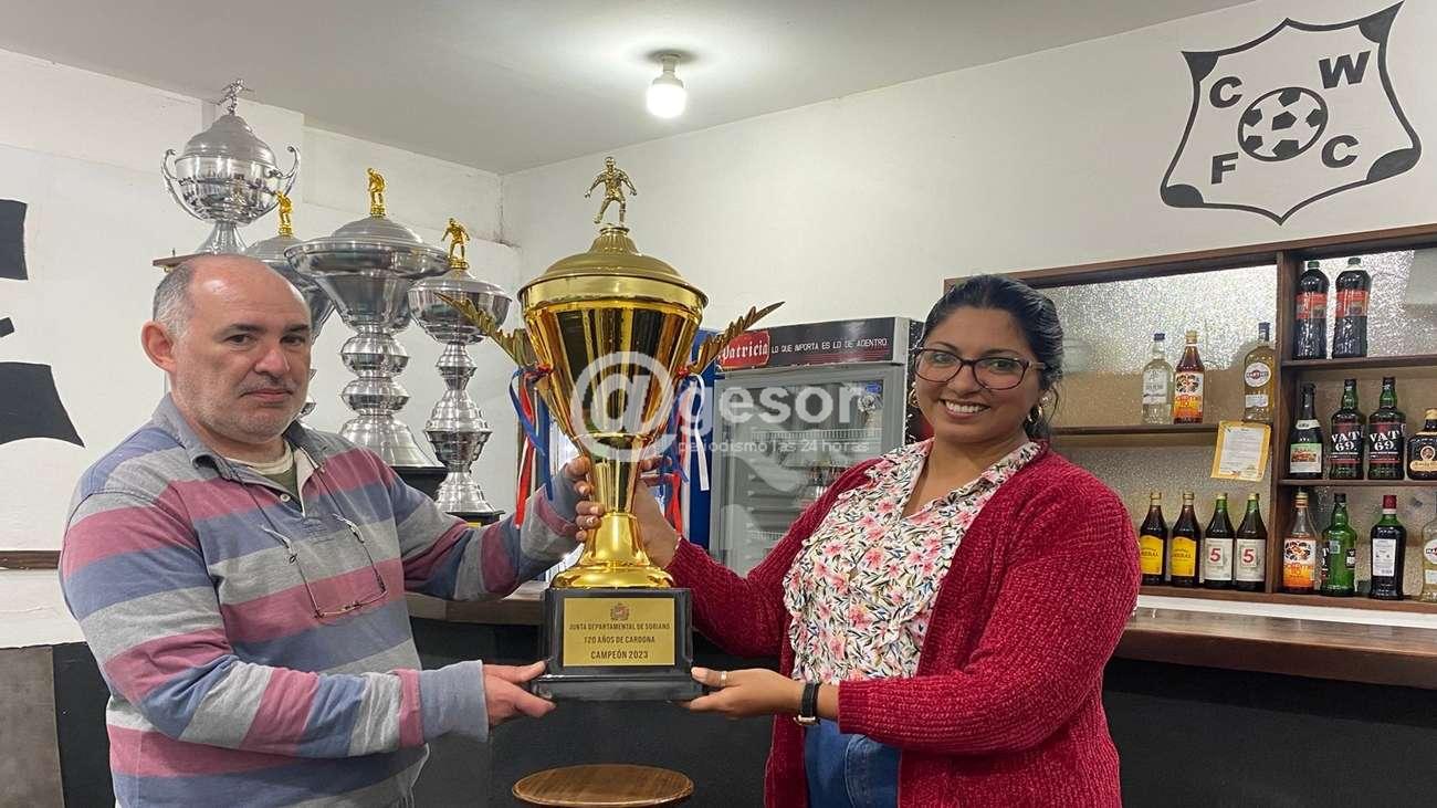 La entrega se cumplió en la sede de dicha Liga, recibiendo el presidente Rodolfo Martínez, el trofeo que se otorgará al campeón de uno de los certámenes oficiales, en el marco de los festejos de los 120 años de la ciudad de Cardona, que se están celebrando en este año 2023.