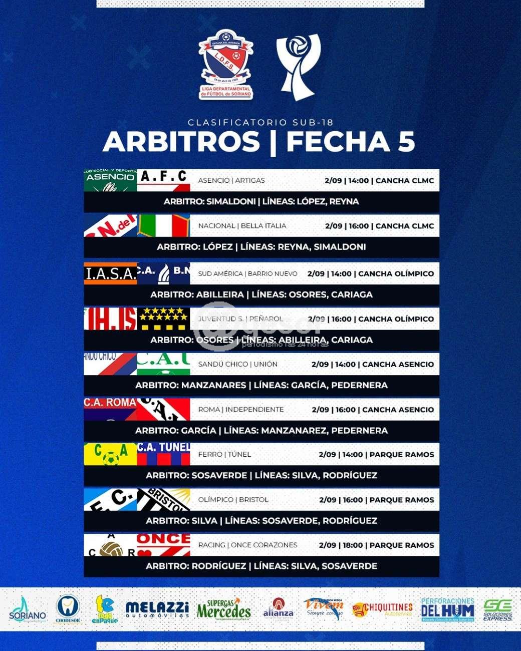 Asimismo el Colegio designó los árbitros que tendrán a cargo la conducción de los partidos de la 5ª fecha del Clasificatorio de categoría Sub 18 que se juega íntegramente este sábado 2 de setiembre.