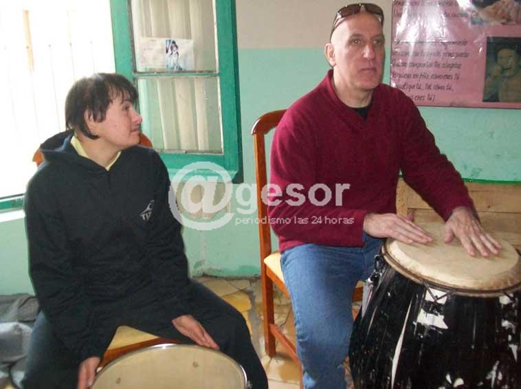 En la sede de la Asociación Down de Soriano, ubicada en Calle Cassinoni, dictó un taller de percusión del que participaron alumnos de esa institución.