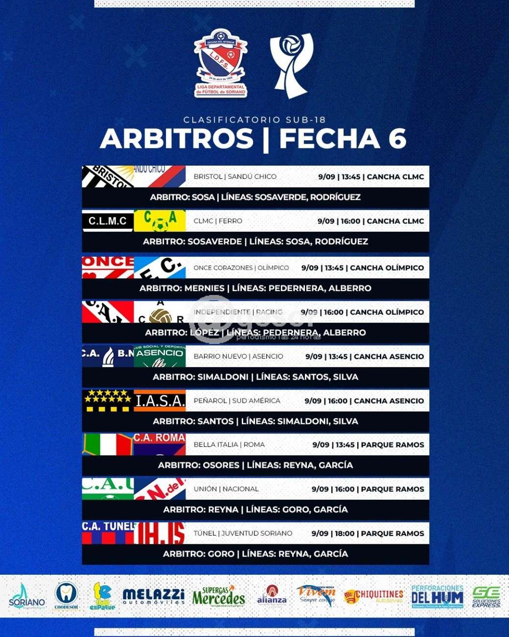 Asimismo el Colegio designó los árbitros que tendrán a cargo la conducción de los partidos de la 5ª fecha del Clasificatorio de categoría Sub 18 que se juega íntegramente este sábado 9 de setiembre.
