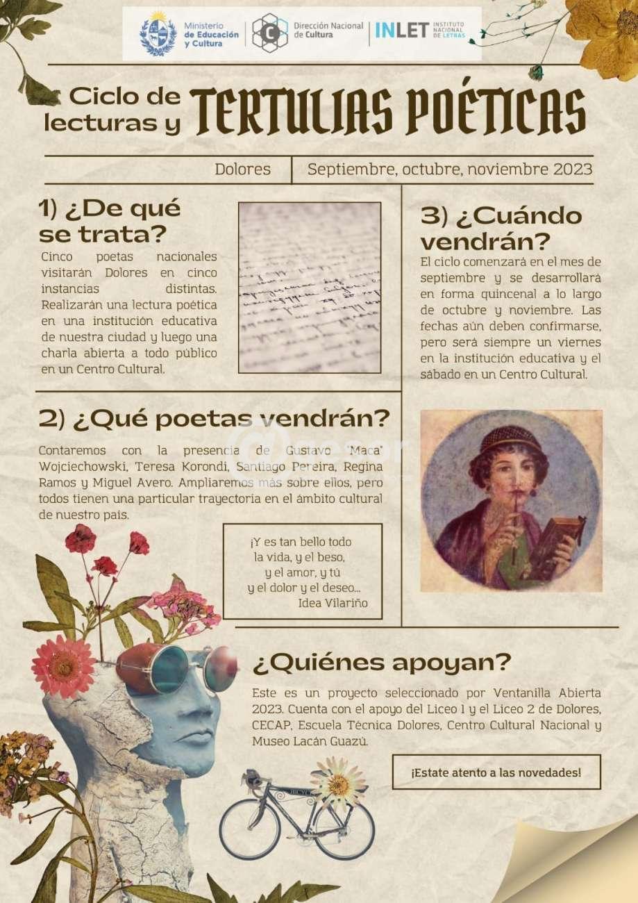 En la sala del Centro Cultural Nacional de Dolores se desarrollará ciclo de lecturas y tertulias poéticas en estas fechas: