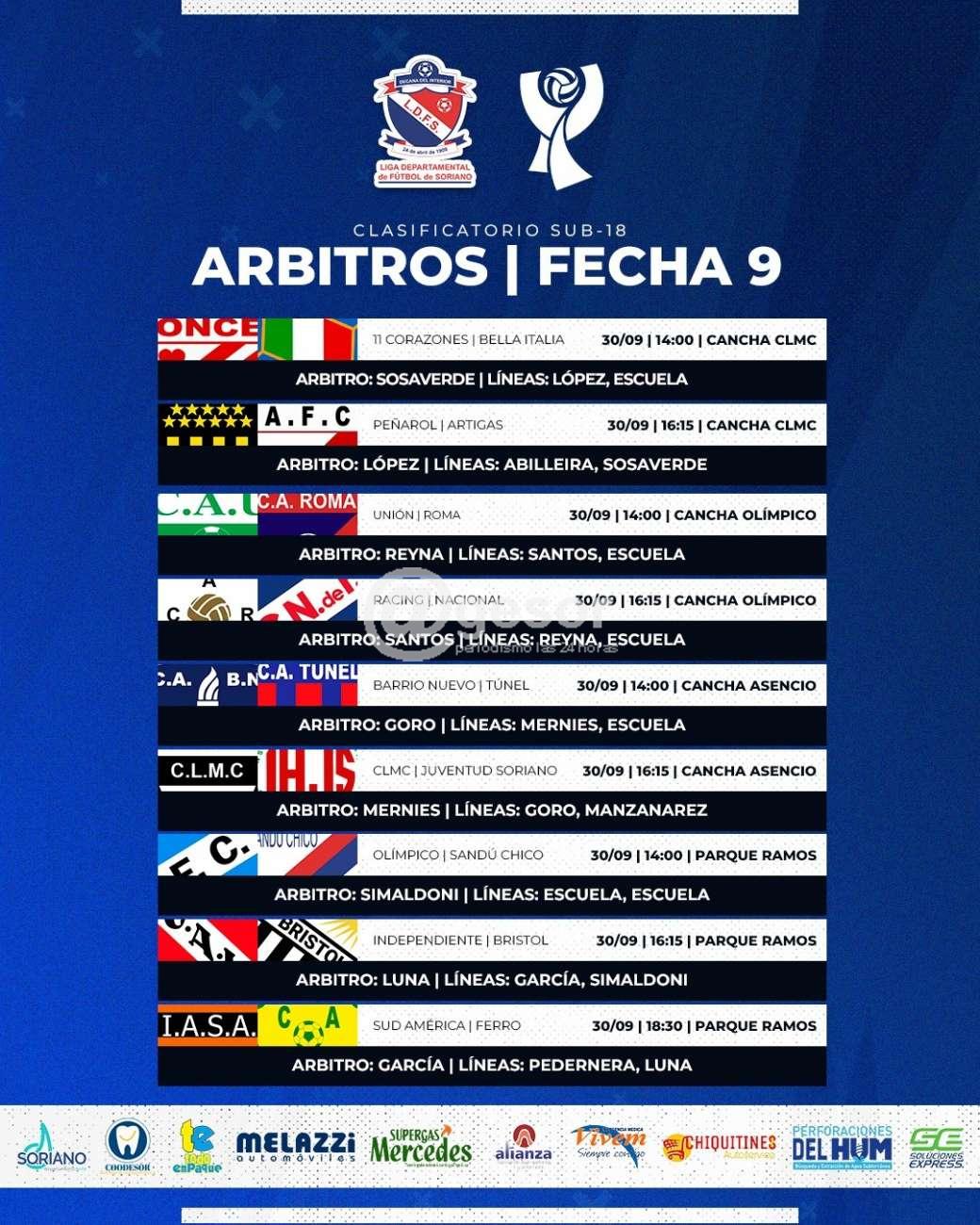 A su vez se determinaron las ternas que estarán conduciendo los encuentros de la categoría Sub 18 que disputará la fecha 9 del Clasificatorio, y que se jugará íntegramente este sábado, cuyos detalles se encuentran en la fotografía adjunta.