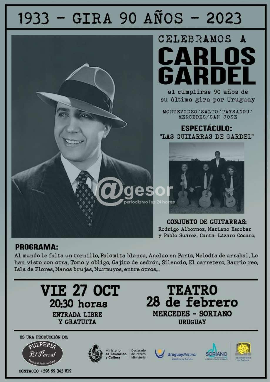 Al cumplirse 90 años de este hito gardeliano, se presenta el espectáculo “Celebramos a Carlos Gardel”, con conciertos conmemorativos en Montevideo y Mercedes, junto al conjunto “Las Guitarras de Gardel”, a cargo del músico Rodrigo Albornoz, miembro de la Academia Nacional del Tango, con las guitarras de Mariano Escobar y Pablo Suárez. En la voz de Lázaro Cócaro se interpretará el repertorio que Don Carlos cantara para el público uruguayo en 1933.