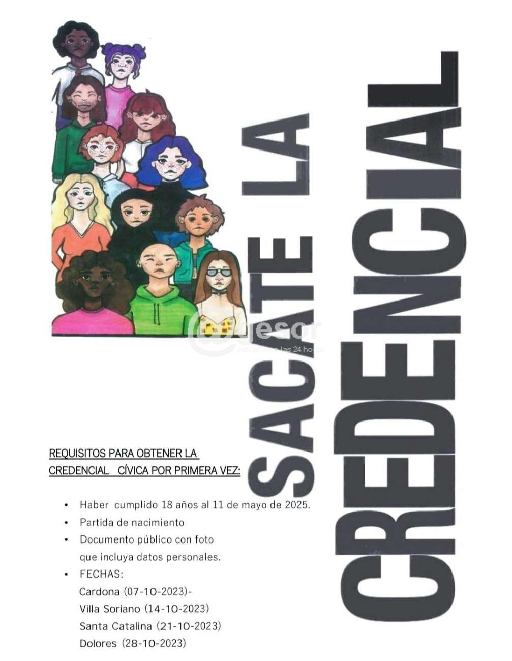 La Mesa Inscriptora de la Oficina Departamental Electoral de Soriano estará presente este sábado 7 de octubre en la ciudad de Cardona en la sede del Municipio, para atender a todos aquellos ciudadanos que estén en condiciones de solicitar la Credencial Cívica por primera vez.