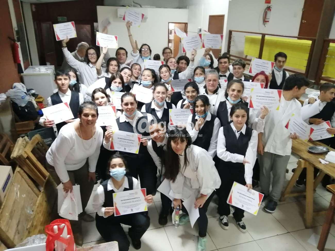 El servicio de catering a cargo de los 52 alumnos de UTU de los cursos de Sala Bar y Gastronomía, dirigidos por sus profesores, Jorge Merino y Alejandra Tour.