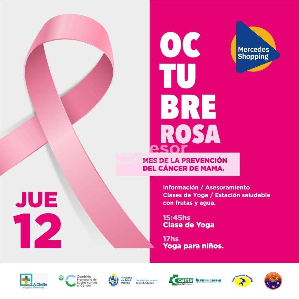 En el marco de Octubre Rosa, mes de la prevención del cáncer de mama este jueves 12 de octubre se brindará información, asesoramiento, clases de yoga y habrá una estación saldable con frutas y agua en instalaciones de Mercedes Terminal Shopping.
