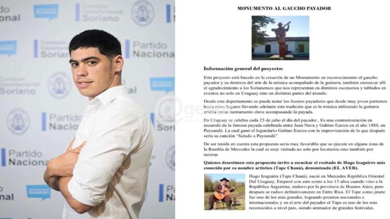 Con una alegría y satisfacción a pleno quisiera agradecer al organismo de la Junta Departamental de Soriano, especialmente a sus miembros ediles, que en el recinto de la misma en el día ayer se votó uno de los proyectos que hemos presentado hace ya más de un año y unos meses. Este proyecto consiste en la creación de un "Monumento al Gaucho Payador", Expediente 327 repartido 420 el cual fue votado por una unanimidad.