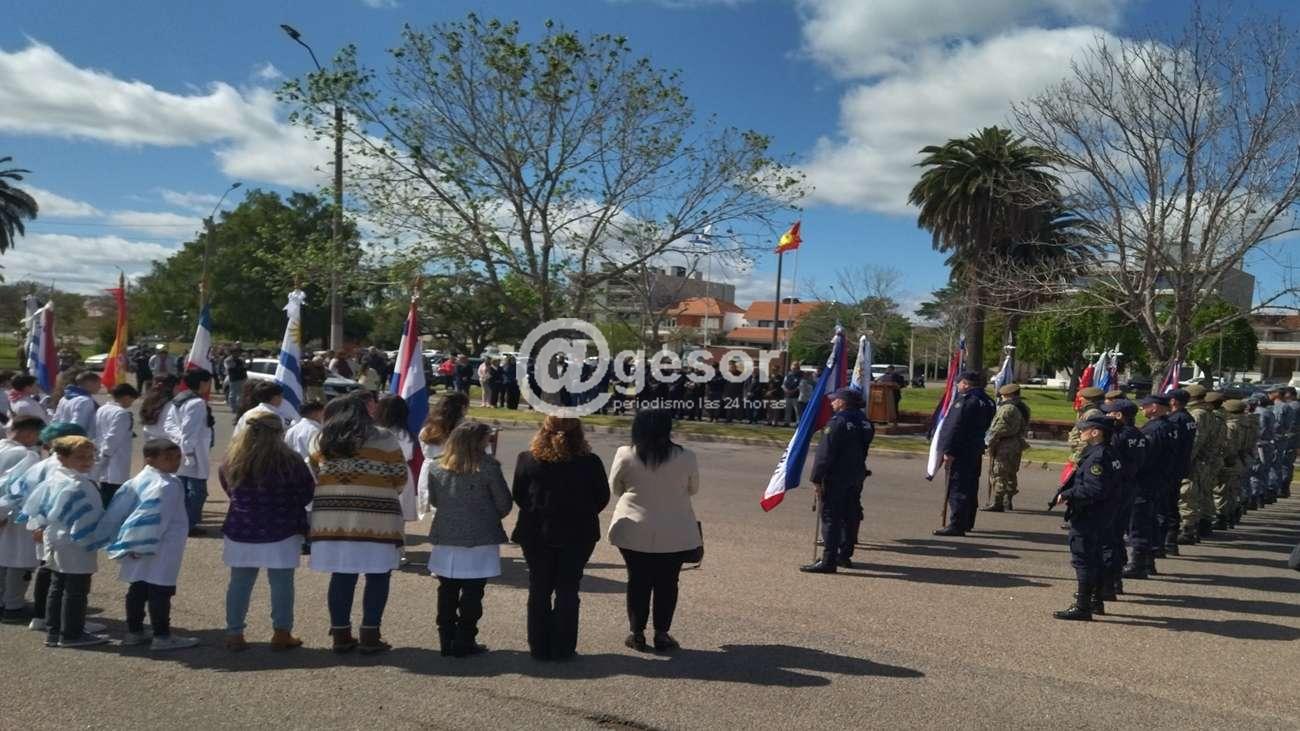 Mientras tanto, la parte oratoria estuvo a cargo del diputado Martín Melazzi, y posteriormente las autoridades presentes colocaron una ofrenda floral instituida por el Hogar Español.