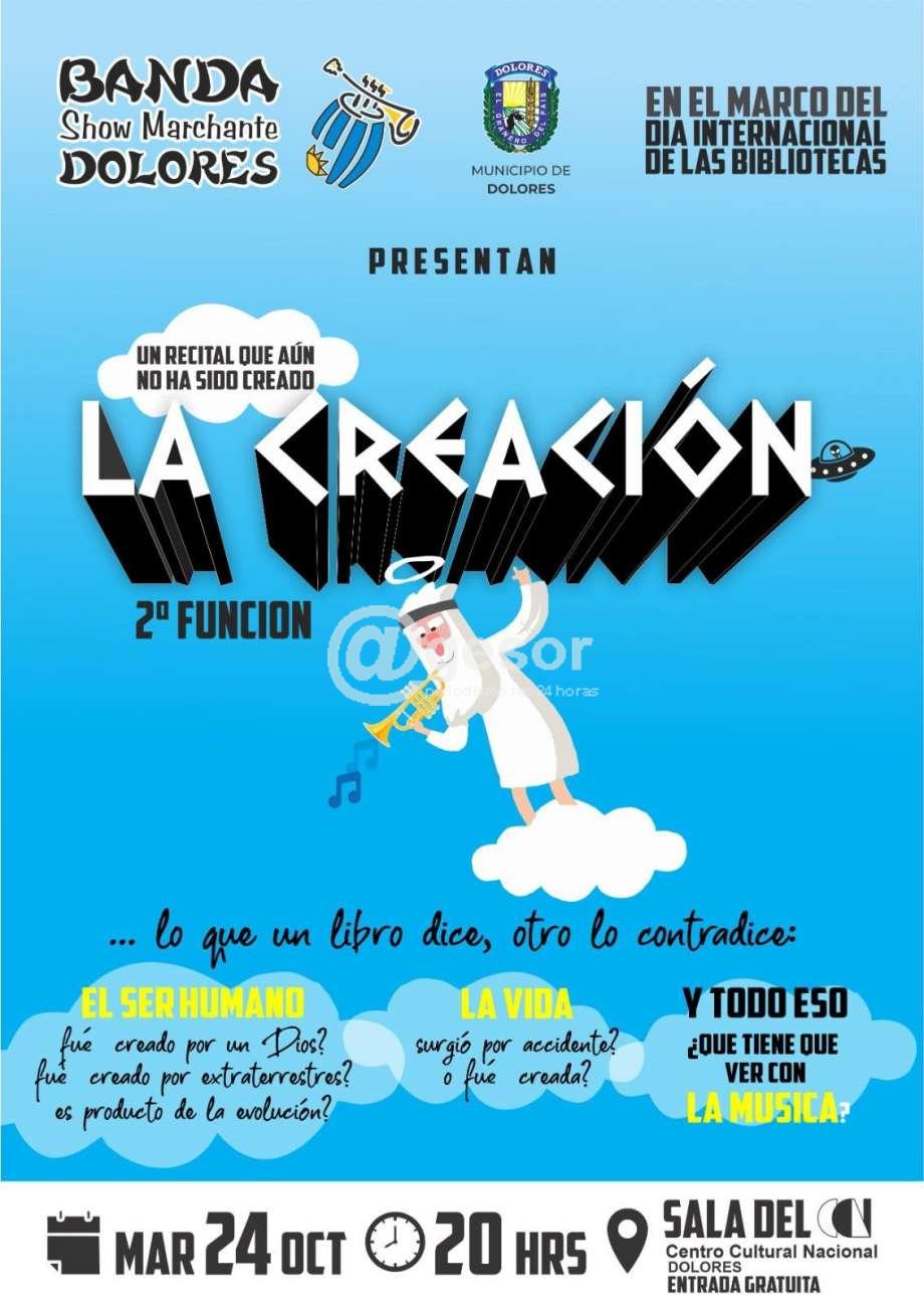 El Municipio de Dolores y la Banda Show Marchante Dolores, en el marco del Día Internacional de las Bibliotecas presentan "Un recital que aún no ha sido creado LA CREACIÓN", segunda función.