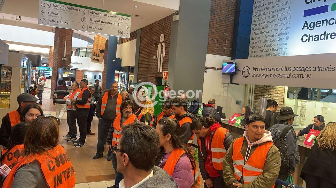 Trabajadores del transporte se manifestaron frente a Agencia Central en la terminal de Tres Cruces por el despido de 4 trabajadores. Una situación que ha tenido un par de instancias en la DINATRA sin resultados hasta el momento.