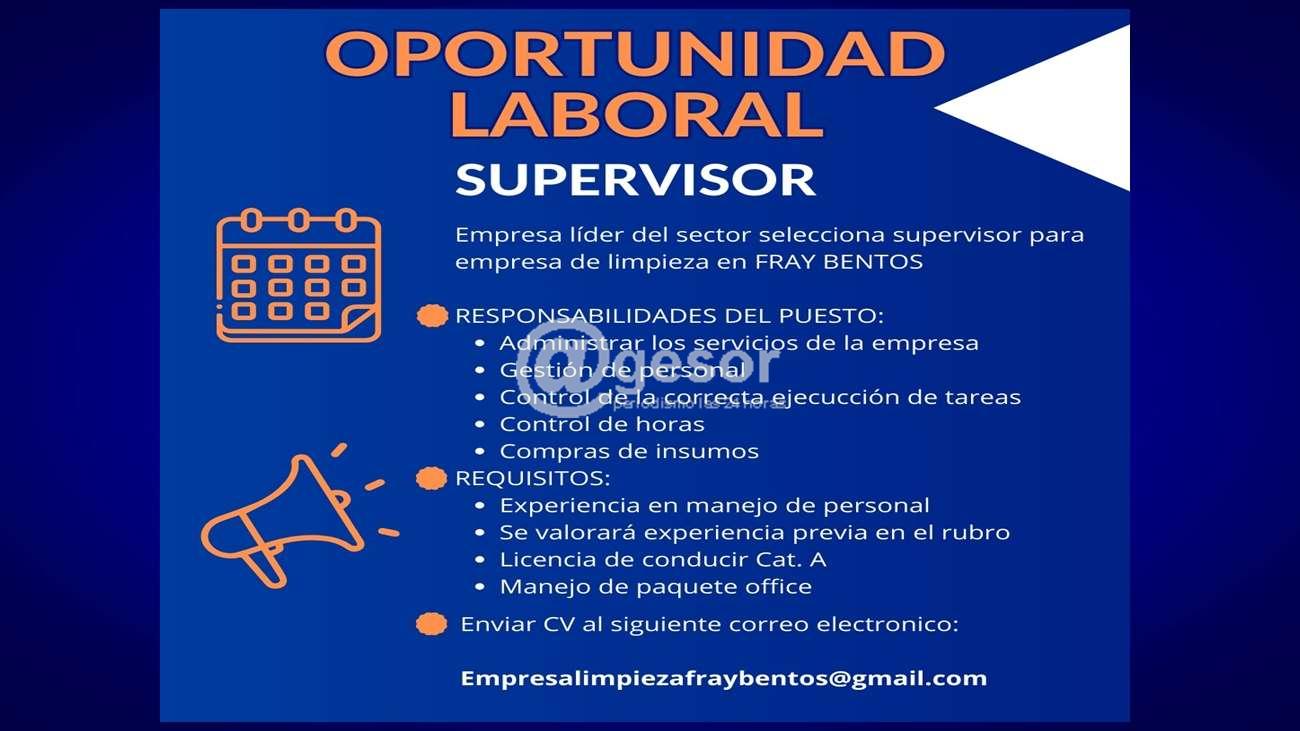Empresa líder del sector selecciona supervisor para empresa de limpieza en FRAY BENTOS.