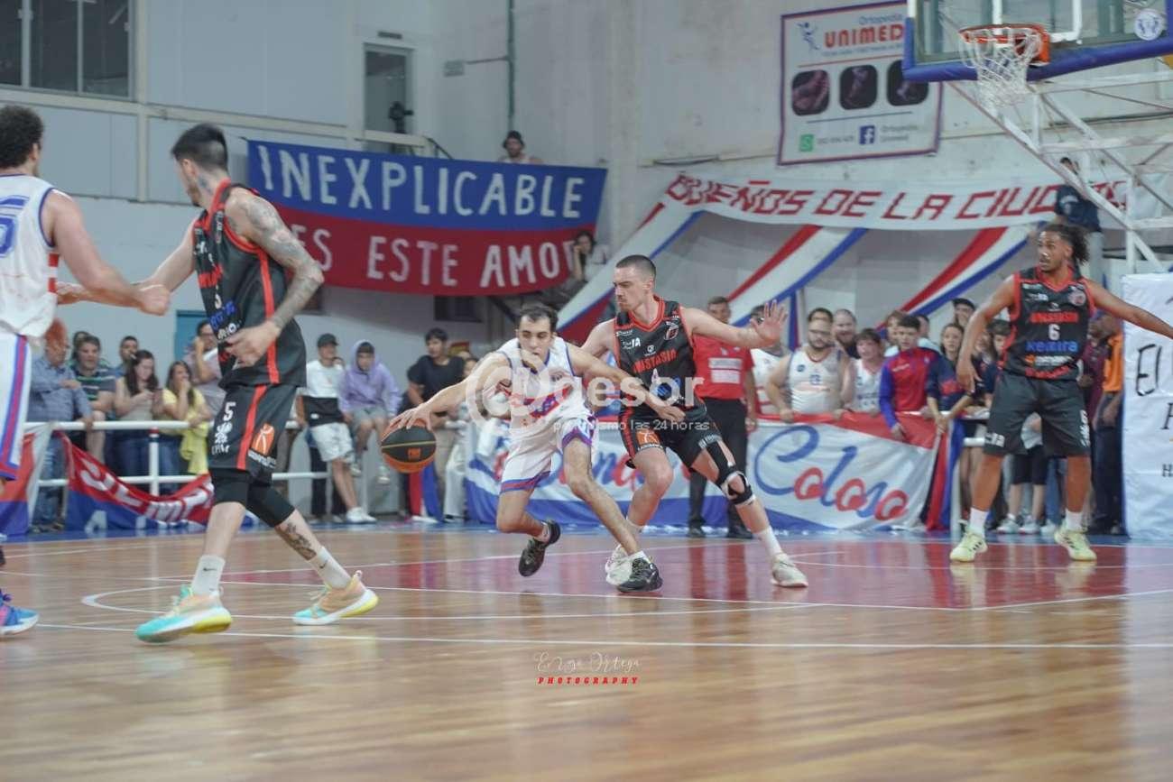 Un encuentro parejo, que terminó el primer cuarto igualado en 20, donde ya Vázquez mostraba que estaba en una buena noche y que es un jugador experiente, hecho para este tipo de partidos, Barriola en el rival respondía junto con Timote que era el que llegaba con mayor facilidad al gol en un juego muy físico como iba a darse a lo largo de toda la noche.
