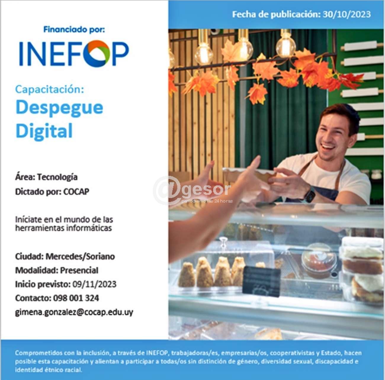Desde el INEFOP Soriano se informa que se aprobó una nueva oportunidad de curso para Despegue Digital en Soriano.