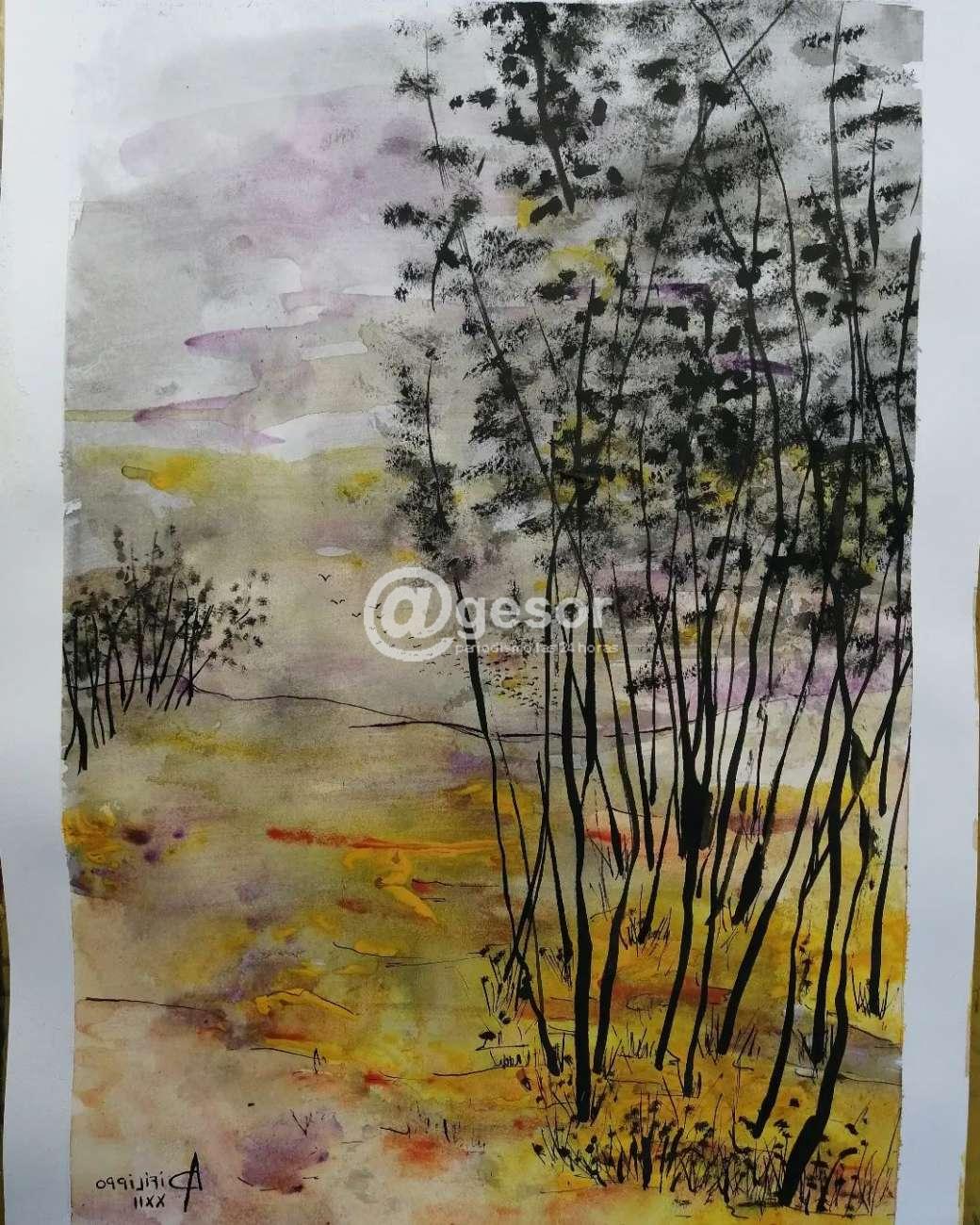 “Los colores y los días” lo componen una veintena de obras realizadas entre los años 2019 y 2023 en diferentes técnicas (tinta, acrílico, óleo) teniendo como eje temático el paisaje.
