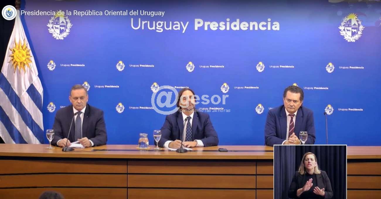 Una vez culminadas las reuniones planificadas por el Presidente con los diferentes actores políticos, se presentó en la sala de conferencias de la Torre Ejecutiva ante los medios de comunicación, acompañado del Secretario de Presidencia, Dr. Alvaro Delgado y del Prosecretario de la Presidencia Dr. Rodrigo Ferrés.