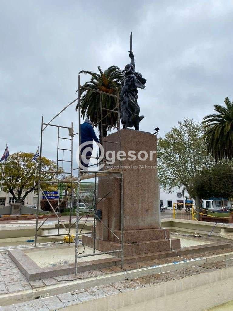 Desde el Municipio de Dolores se informa "en los últimos días estuvimos trabajando en la zona central de la plaza Constitución.