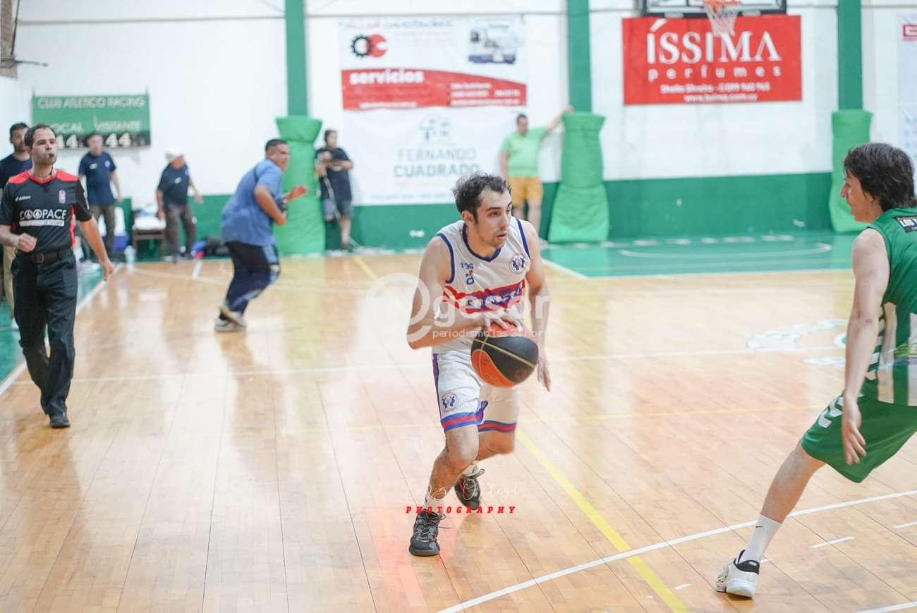 Una ajustada victoria consiguió como local Racing ante Nacional de Fray Bentos y de esta manera se sube transitoriamente a la punta del Campeonato Competencia de la Liga Regional de Básquetbol de Soriano, con un encuentro más, habiendo ganado cinco de los seis encuentros disputados, solamente habiendo caído ante Remeros.