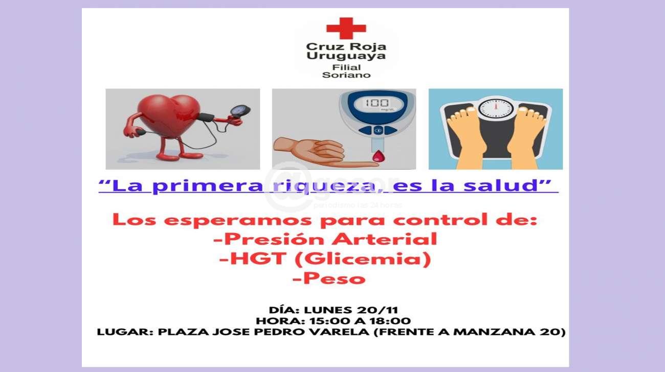 El lunes 20 de noviembre la Cruz Roja Filial Soriano estará realizando control de presión arterial, HGT (Glicemia) y control de peso en otra actividad gratuita en prevención en salud.