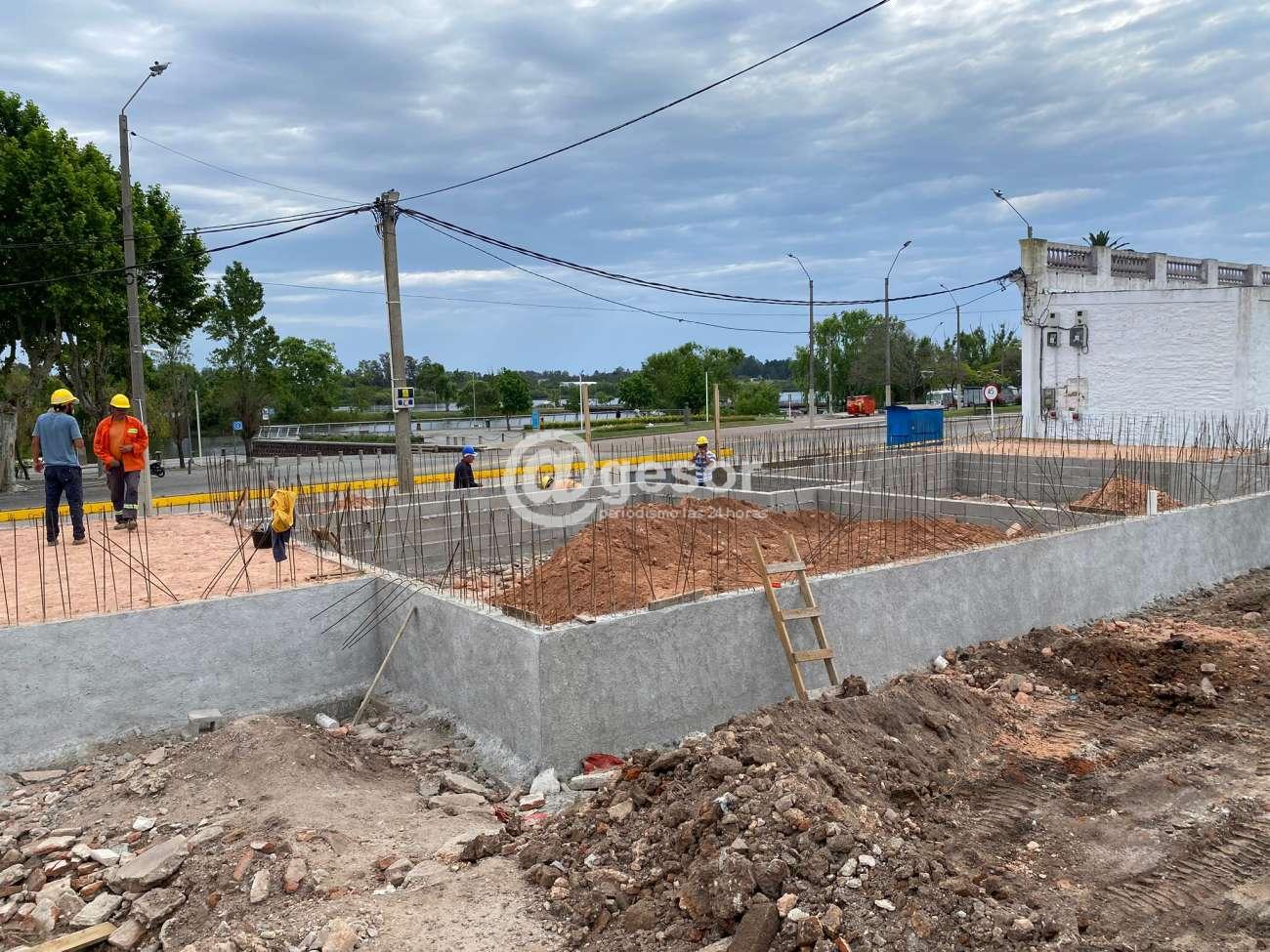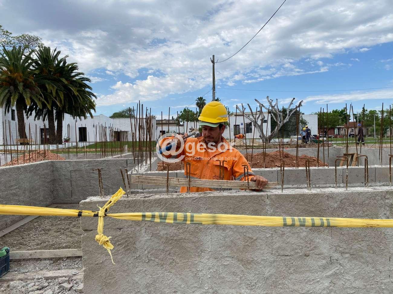 Tras culminar la construcción de los muros de contención, se procedió a impermeabilizarlos, para que actualmente se rellene con tosca todo el interior y se prepara la superficie superior para conformar carpeta de hormigón, lo que será el piso de escenario.