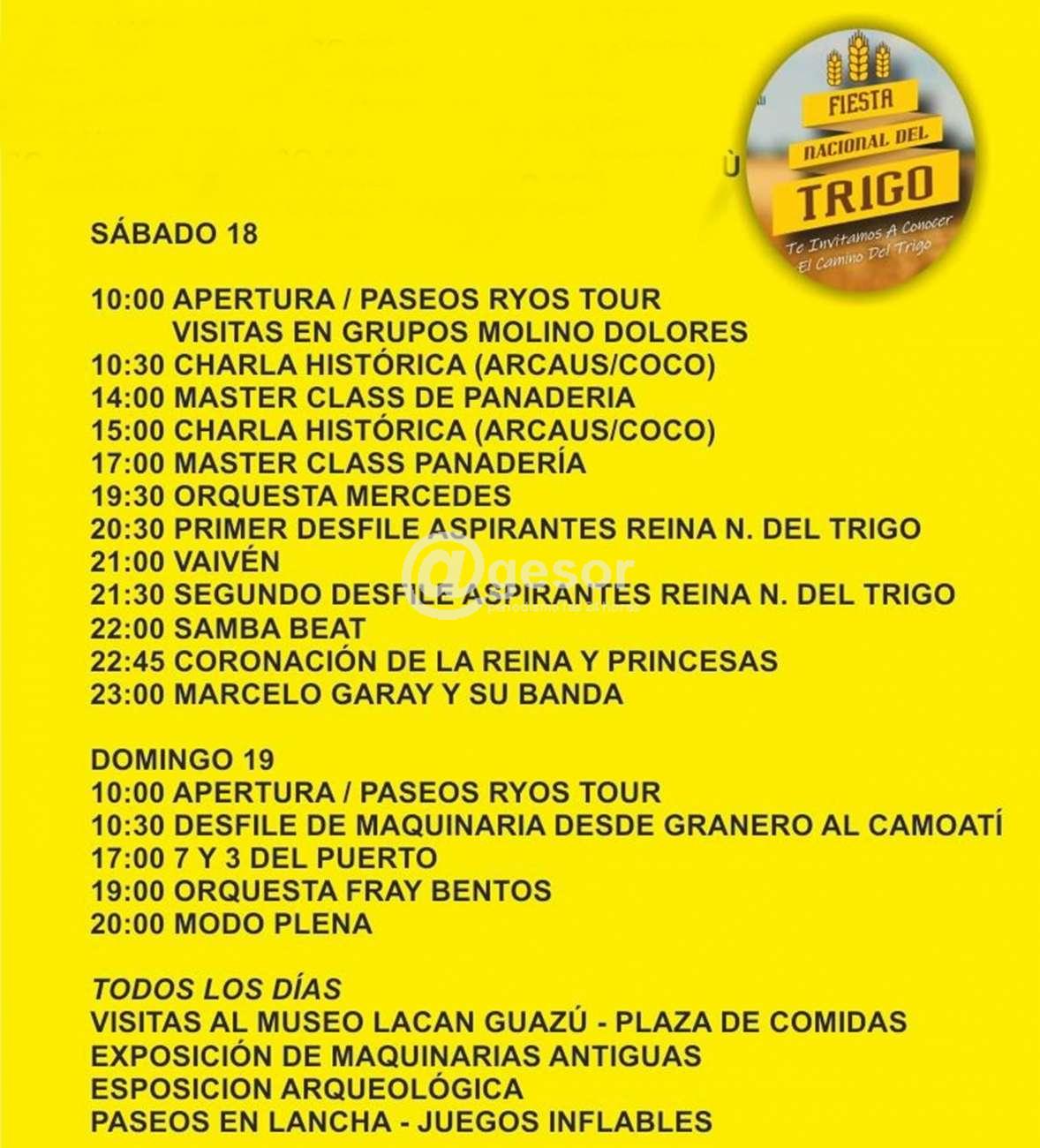 Este viernes 17 se iniciaron las actividades de la Fiesta Nacional del Trigo con la inauguración de la cosecha por parte del Presidente de la República, además de la programación que la organización tenía prevista y que culminó en la noche.