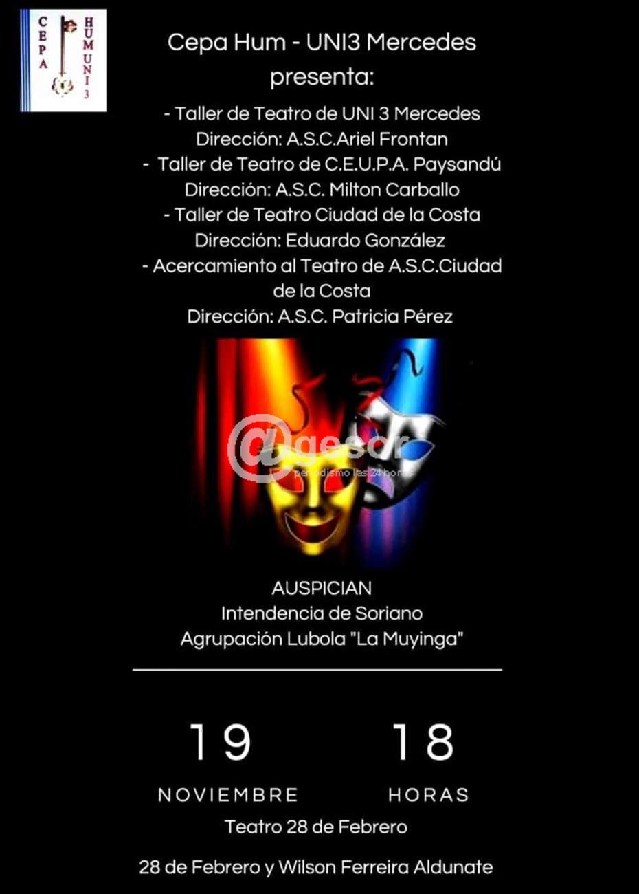 Actividad a desarrollarse este domingo 19 de noviembre a las 18.00 horas en el Teatro 28 de Febrero, en 28 de Febrero y Wilson Ferreira Aldunate de Mercedes.