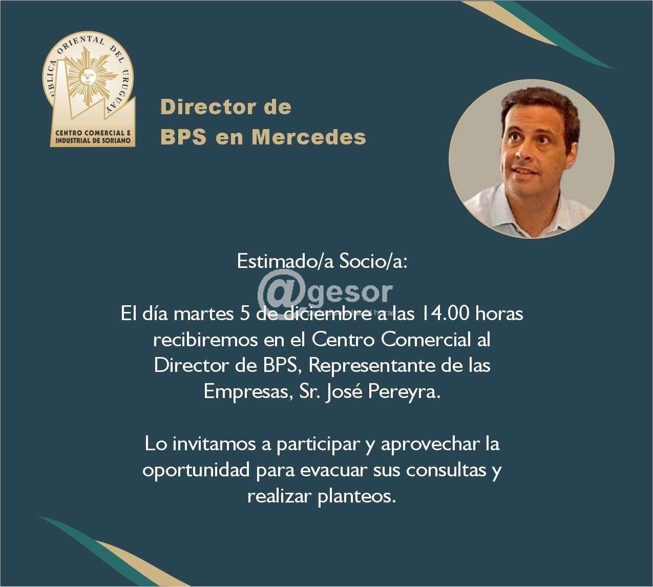 Este martes 5 de diciembre a las 14.00 horas recibirán en el Centro Comercial el Director de BPS en representación de los Empresarios, José Pereyra.