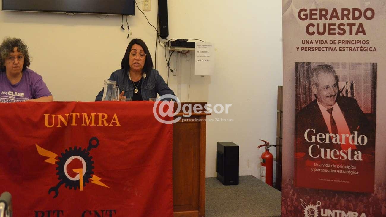 En la presentación Carolina Silva, presidenta del Plenario Intersindical de Soriano destacó la importancia, para el movimiento sindical de la figura de Gerardo Cuesta. En tanto Daniela Duran, responsable de formación del UNTMRA, realizó un repaso de la trayectoria del Cuesta y el contexto político y social que le tocó vivir.
