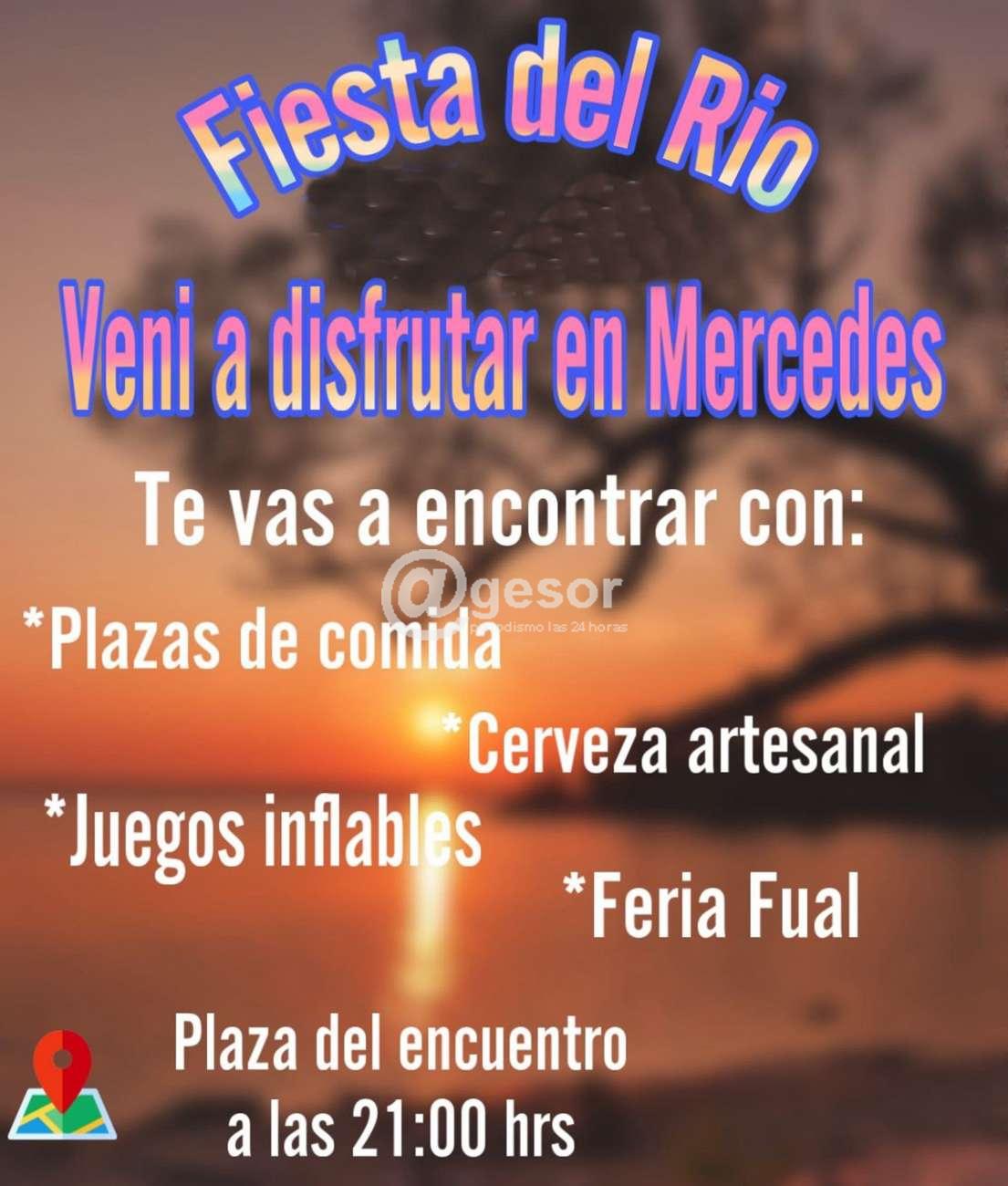 Este domingo concluye la Fiesta del Río que ha venido desarrollándose en Mercedes con la plaza del Encuentro como lugar elegido, desde el viernes pasado, con actividades que ofrecen plazas de comida, juegos inflables, feria de FUAL, cerveza artesanal, comenzando todo a las 21.00 horas.