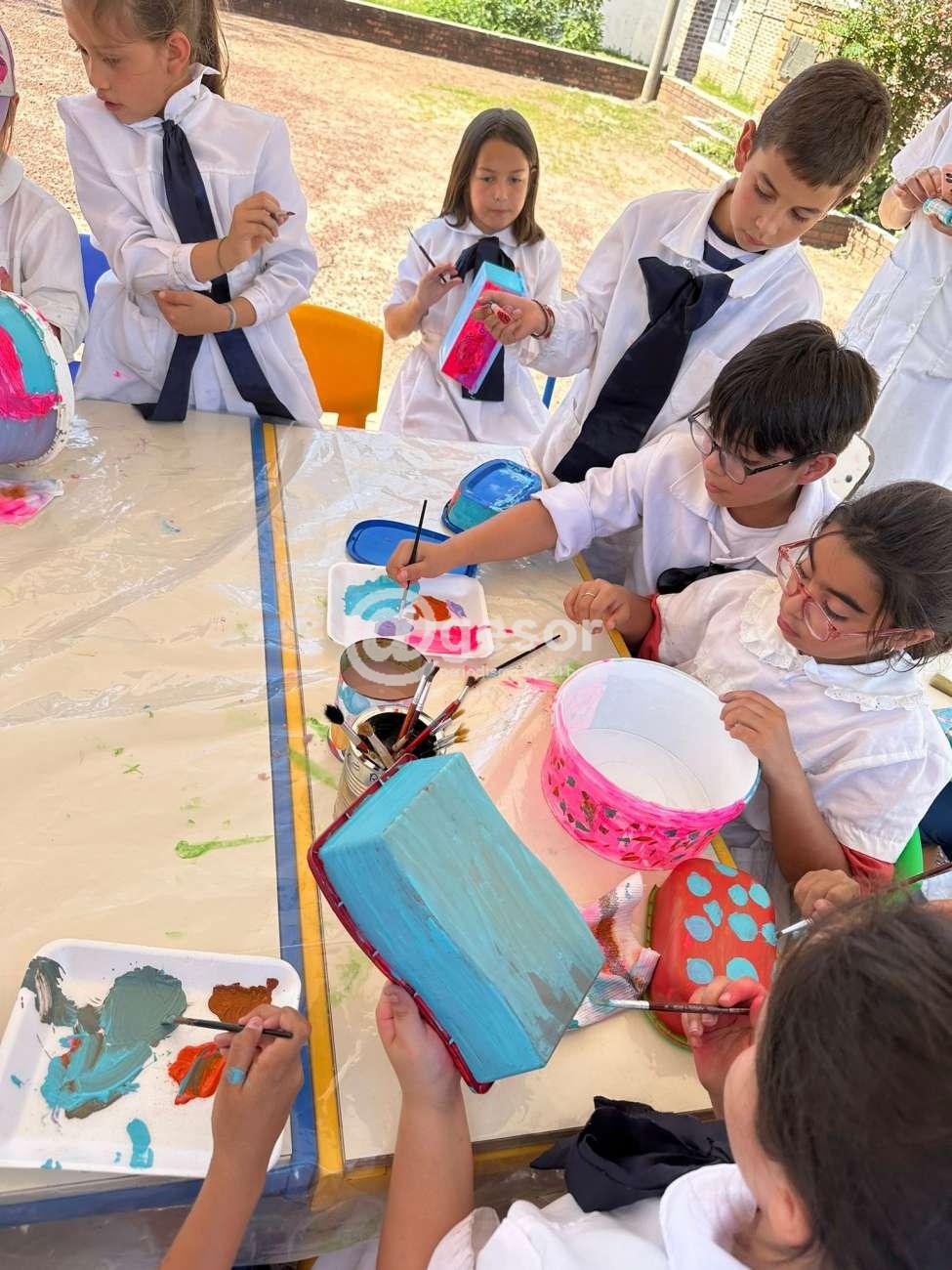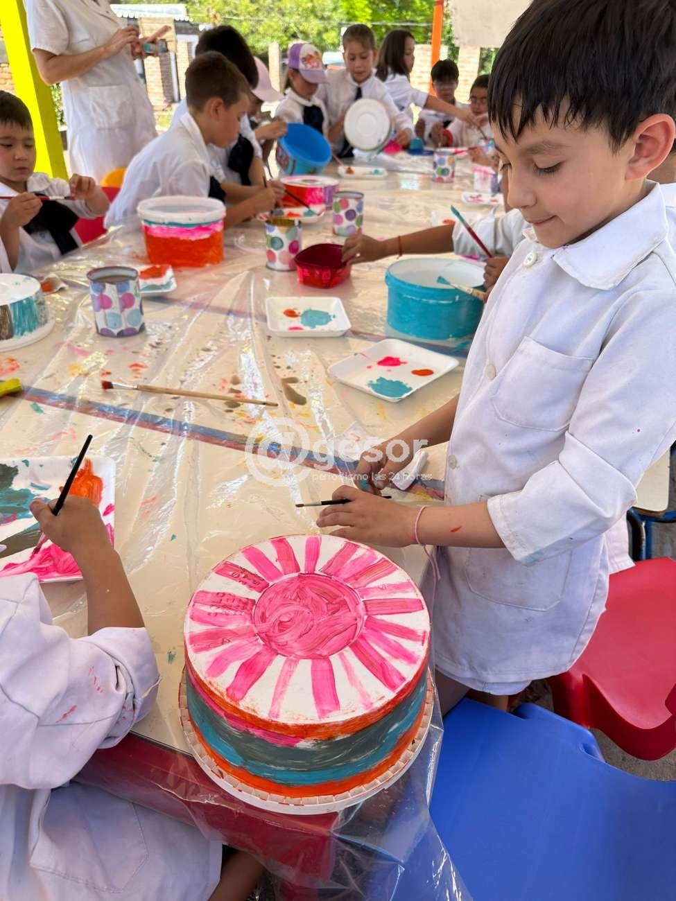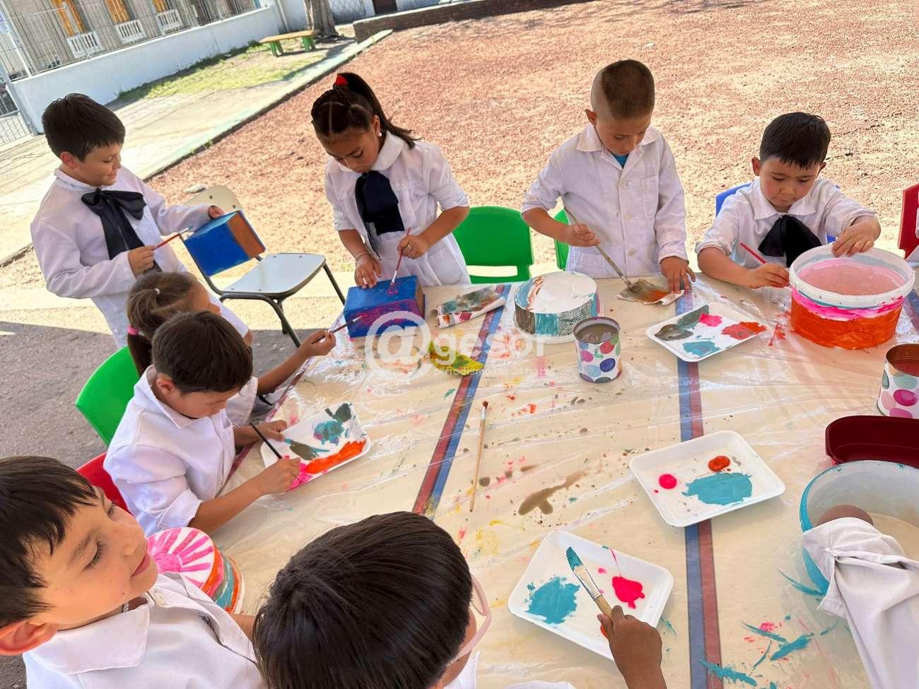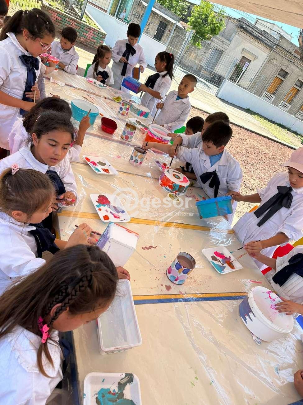 Este martes pintaron los recipientes (reutilizados), para colocar agua y comida para los perros del barrio (alrededor de la escuela).
