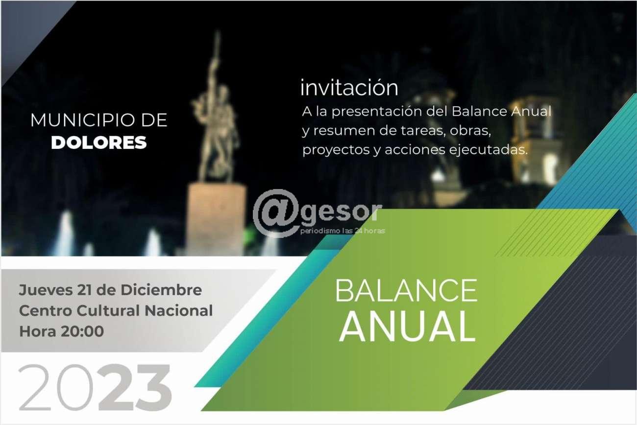 Este jueves 21 de diciembre, en Centro Cultural Nacional, ubicado en Carlos P. Puig esq. Rico Puppo, a las 20.00 horas el Municipio de Dolores, está invitando a la presentación del Balance Anual y resumen de tareas, obras, proyectos y acciones ejecutadas.