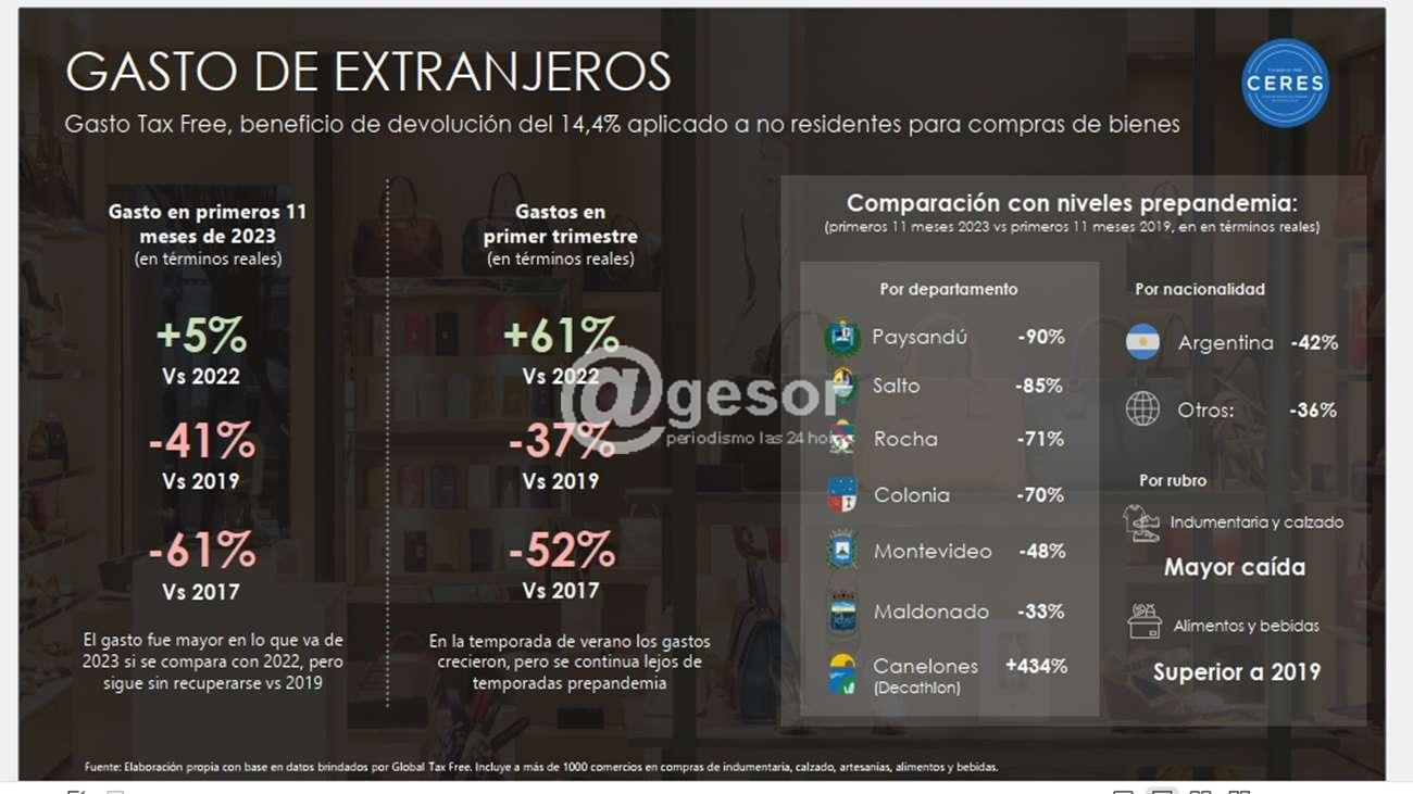 Además 2023 fue el primer año con saldo neto turístico negativo, con gastos de uruguayos en el exterior en niveles máximos. Con perspectivas de revertirse para 2024.