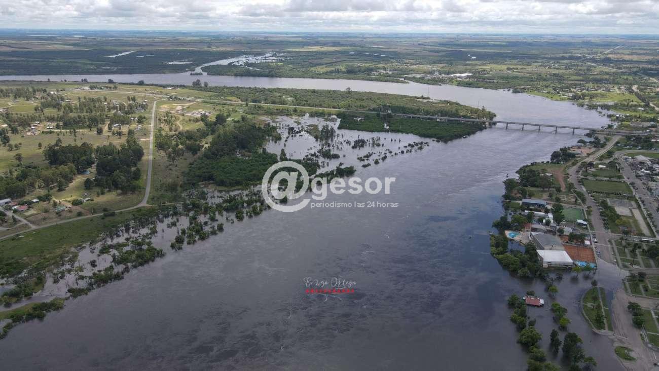 A través de las imágenes de nuestro compañero Enzo Ortega Photography puede apreciarse como se presenta este jueves al mediodía el río Negro desbordado tanto hacia el lado de la ciudad de Mercedes, como de la zona Norte, que cubre gran parte del balnario Los Arrayanes en jurisdicción del departamento de Río Negro.