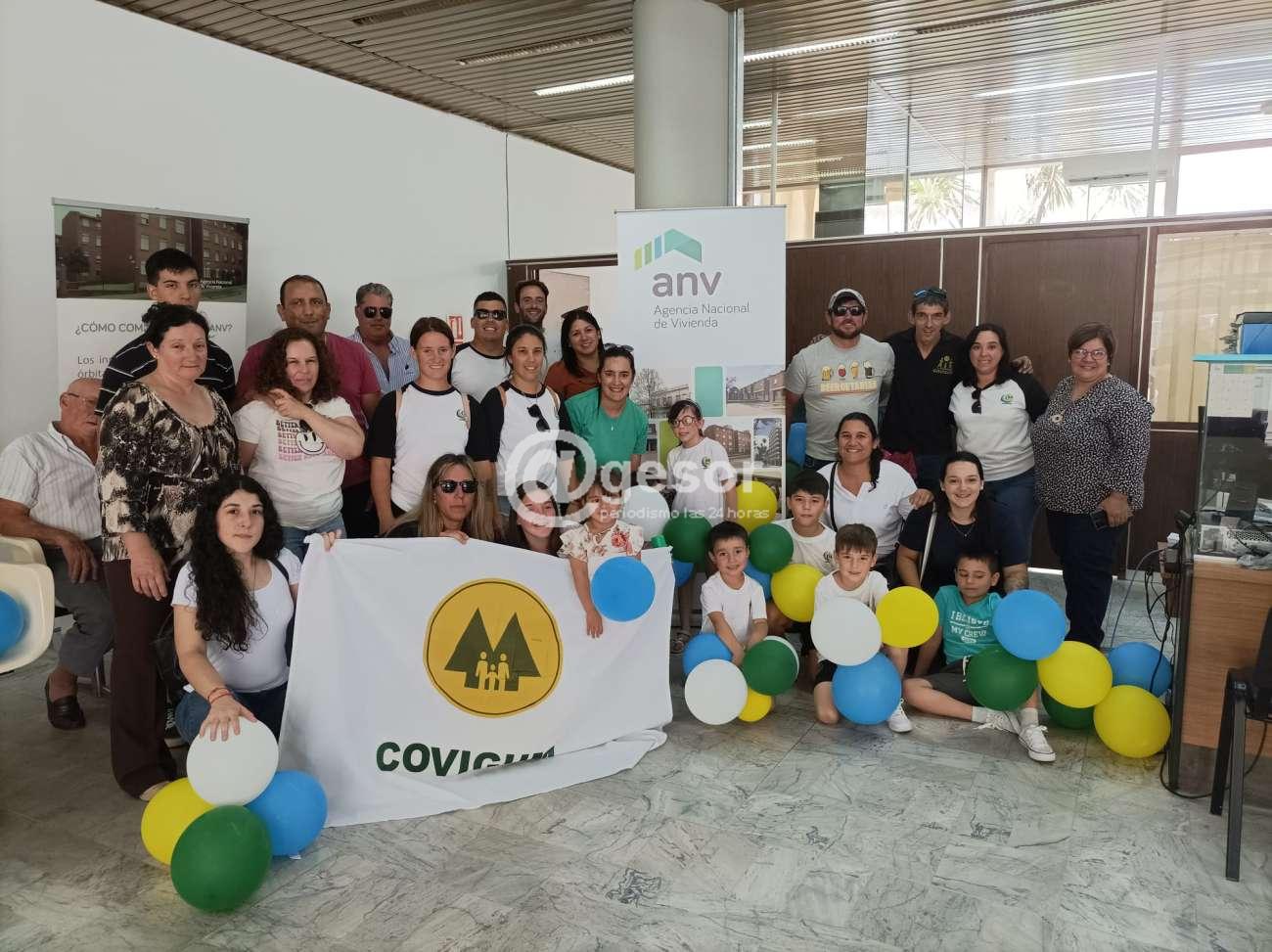 En las primeras horas de la tarde de este miércoles, en calle Colón, frente a la filial de la Agencia Nacional de Vivienda (ANV) en Mercedes, se vivían momentos de algarabía, felicidad, es que un grupo de 12 familias estaba aguardando a sus compañeras de directiva que se encontraban dentro del local estampando la firma para recibir el préstamo para iniciar la obra de construcción del complejo habitacional de la Cooperativa COVIGUM (Cooperativa de Viviendas de Gente Unida de Mercedes).