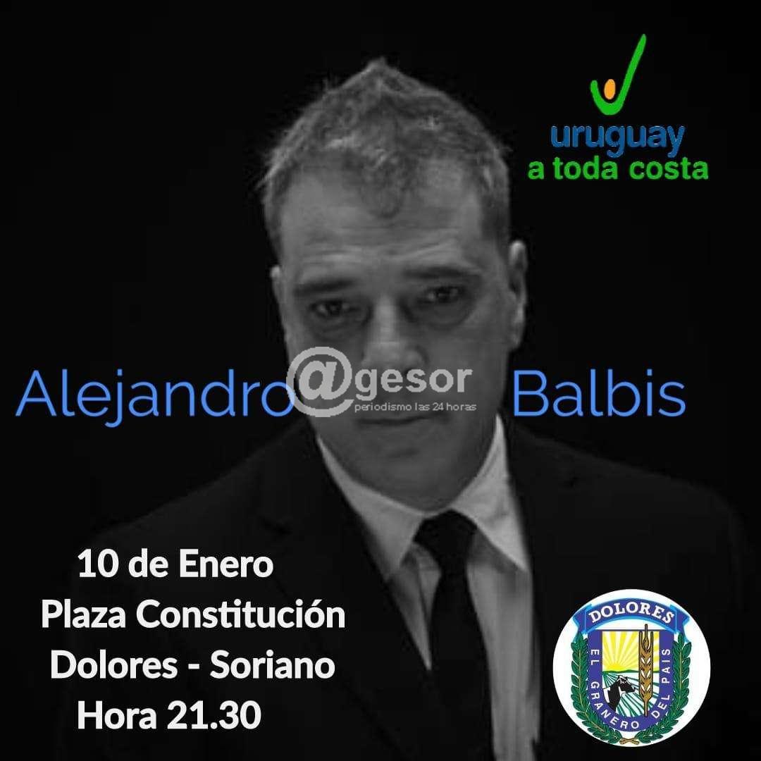 En el marco de la gira "Uruguay a toda costa", este miércoles 10 de enero en plaza Constitución de Dolores, estará presentándose con el apoyo del Municipio doloreño, el intérprete y compositor uruguayo Alejandro Balbis junto a su cuarteto de guitarras.