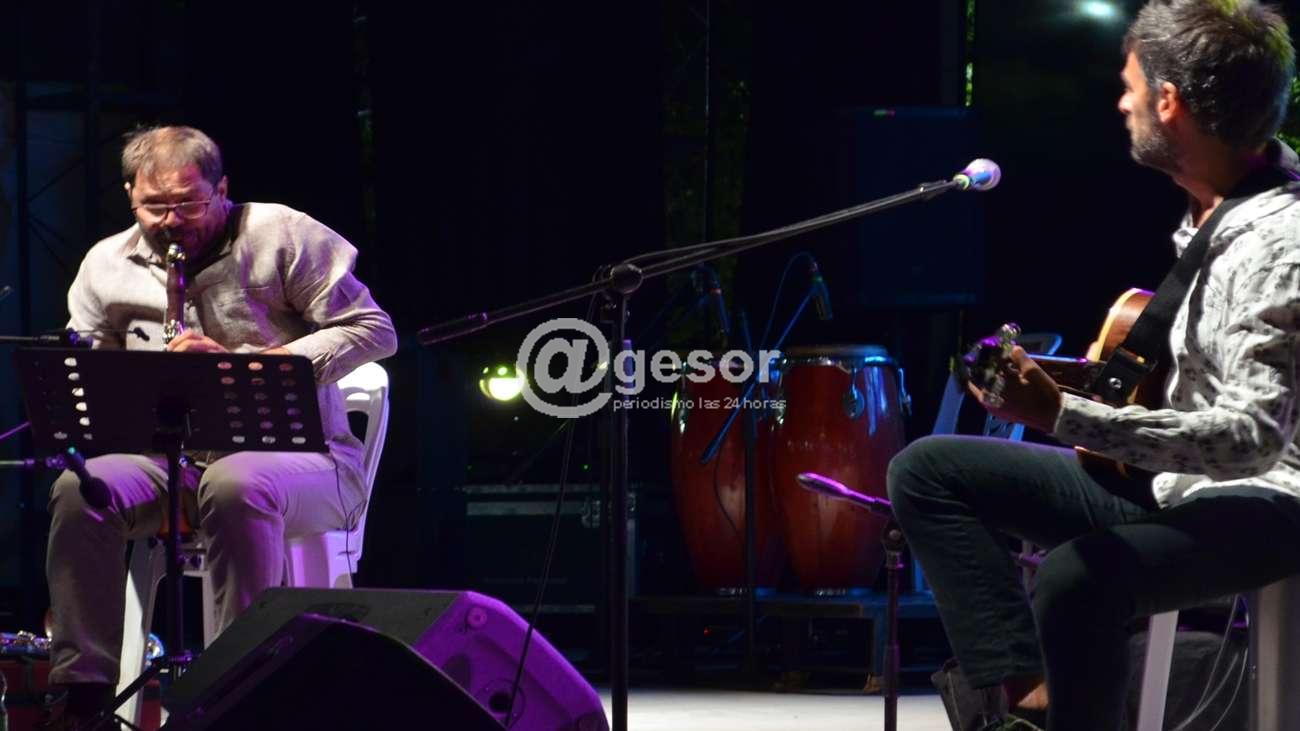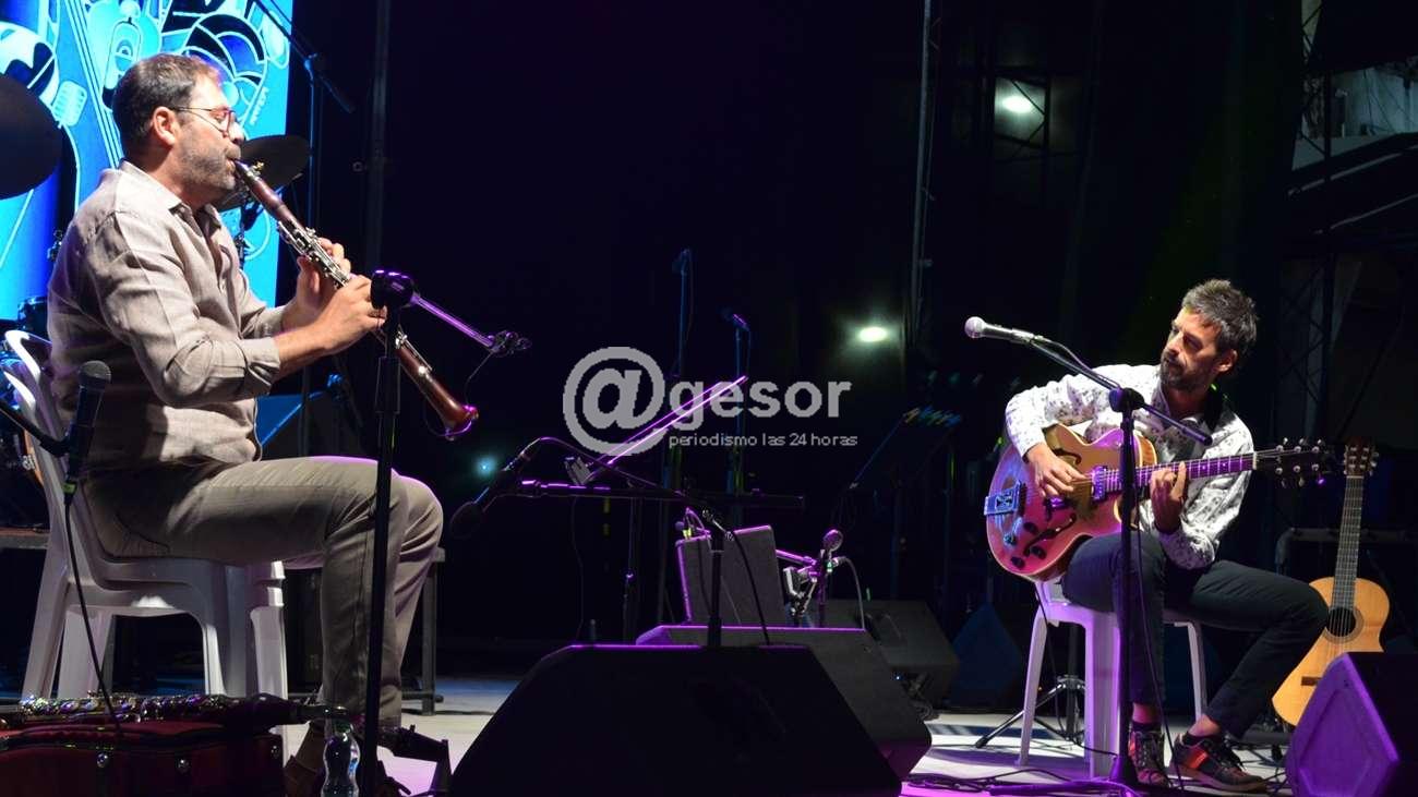 La noche del sábado tuvo doble función con música de Argentina y Brasil. En primer lugar subió al escenario el dúo conformado por Alexandre Ribeiro (Sao Pablo, Brasil) y Alan Plachta (Buenos Aires, Argentina). Este dúo nace como un puente entre dos ciudades, entre dos músicos con distintos bagajes que sin embargo se unen en muchos puntos. Ribeiro, identificado y reconocido como un referente de su instrumento y del Choro particularmente, y Plachta, quien aporta la mayor parte de las composiciones y los arreglos en el dúo, dieron vida y forma al proyecto a mediados de 2014 en una visita de Alexandre a Buenos Aires.
