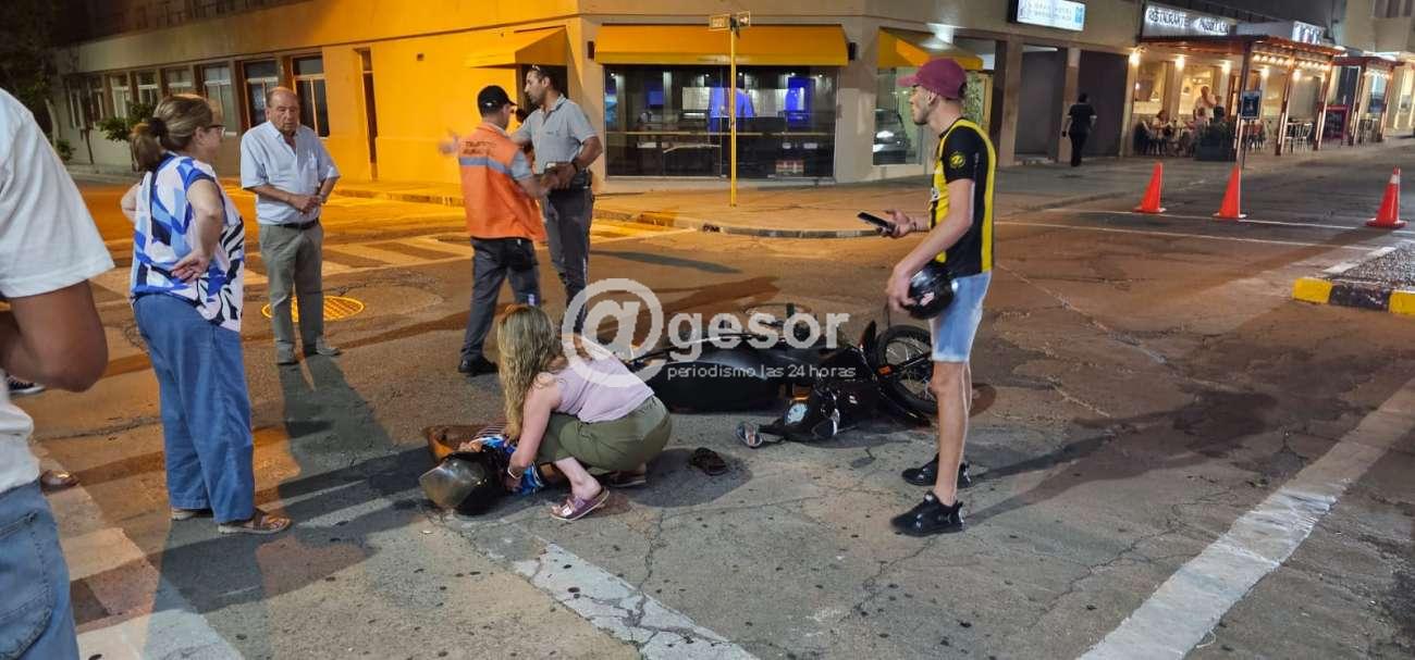 En el lugar entraron en colisión dos motos, una que era conducida por un masculino de 72 años, que circulaba por calle Giménez de Este a Oeste, que al llegar a la altura de calle Artigas es embestida por otra moto que circulaba por esta arteria de Sur a Norte y que tras la colisión prosiguió la marcha.