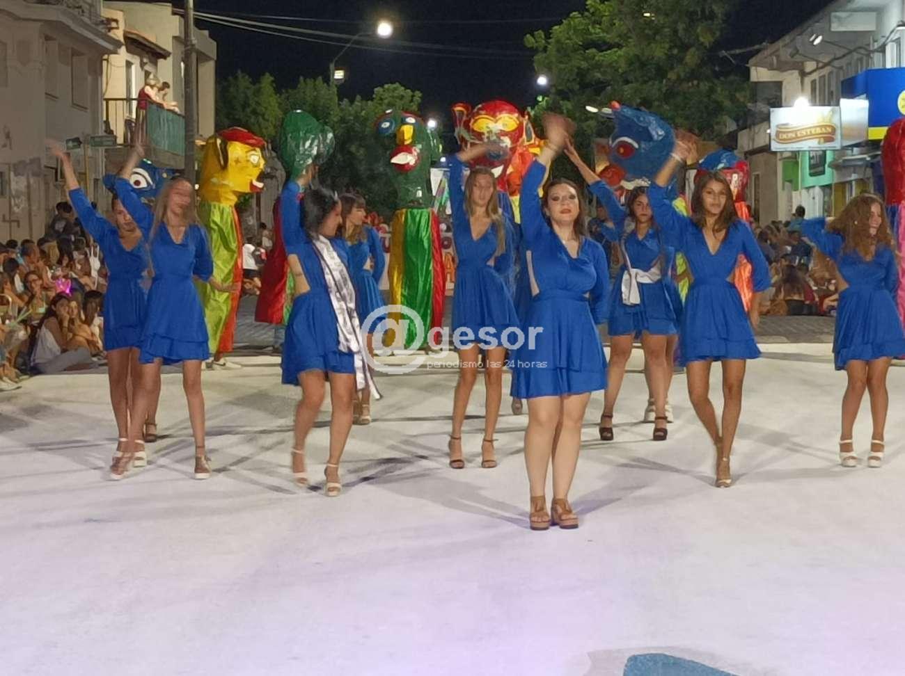 En la carroza debidamente acondicionada, la Reina del Carnaval, Valentina Cano, junto a la primera princesa Nikki Cardozo y a la segunda princesa Camila Ibarra, estas dos que a la vez ostentan el título de Miss Redes Sociales y Miss Amistad respectivamente, junto al resto de las aspirantes que participaron del evento de la elección de la Reina y su séquito, a lo largo de la avda. Lavalleja participaron también de coreografías, armadas por el coreógrafo cardonense, Diego Colmán, haciendo llegar al público su gracia y alegría recibiendo el aplauso de la concurrencia.
