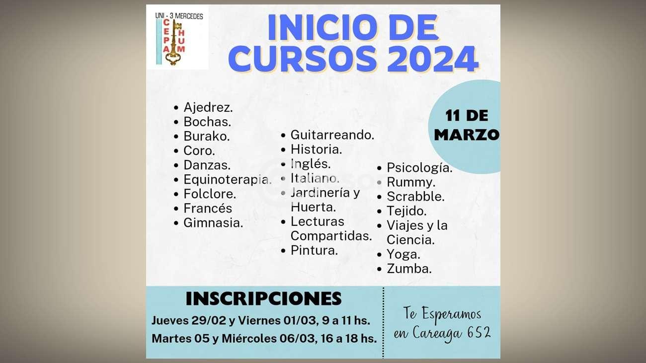 Hasta el 6 de marzo próximo están abiertas las incripciones de CEPA-HUM UNI 3 Mercedes para los cursos que se impartirán durante todo este año.