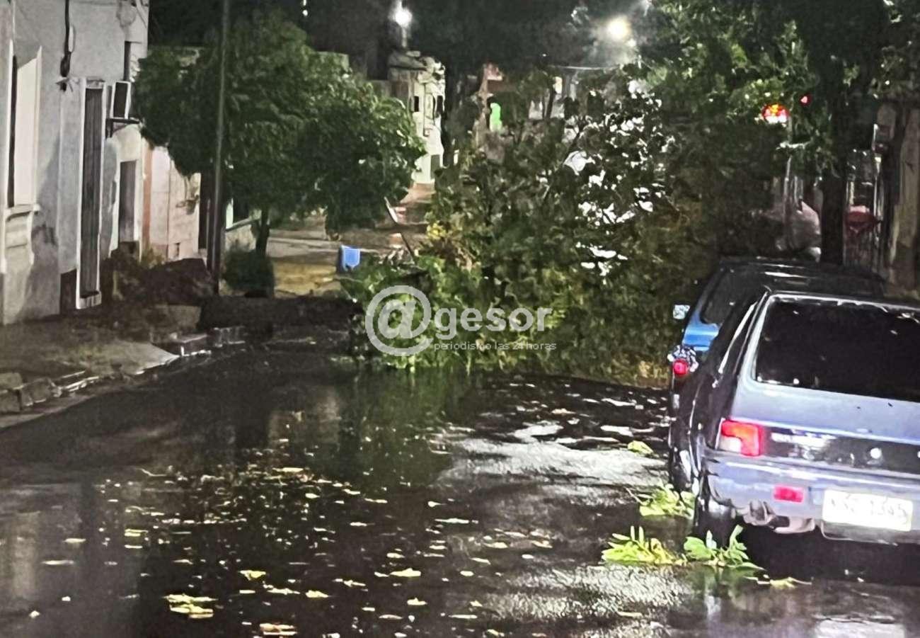 Precisamente en ese marco próximo a las 23.00 horas -la advertencia se actualizaba a las 0.15 horas de este sábado- el pronóstico se cumplió y vientos muy fuertes y lluvias intensas conformaron un combo que causó numerables daños en el alhajamiento públio y en numerosas fincas particulares, generando gran cantidad de árboles del ornato público caídos tanto en la propia planta urbana como paseos que habitualmente lo sufren como el parque Guernica.