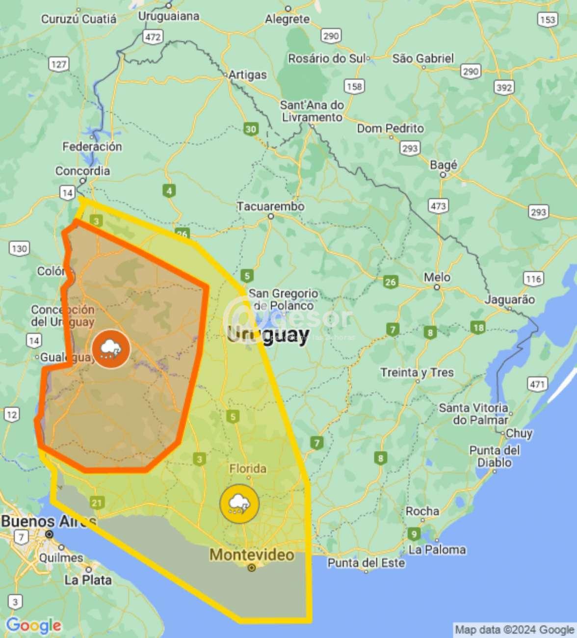 Recordamos que estamos cursando período de alerta naranja emitida por INUMET a las 9.55 horas y que se actualizará a las 12.00 horas y que abarca a todo el departamento de Soriano previéndose con 75% de probabilidades la ocurrencia de tormentas fuertes y lluvias intensas.