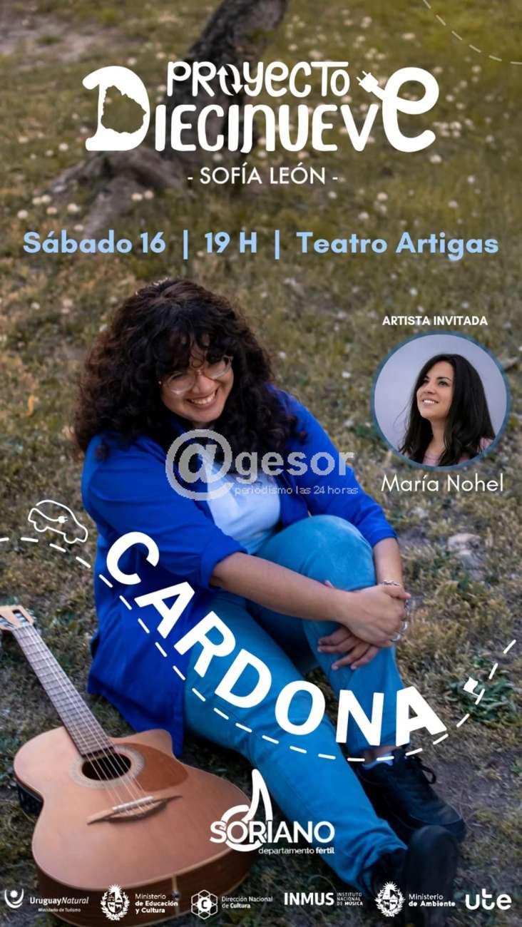 La destacada artista Sofía León, con una trayectoria que incluye más de 200 shows en 12 departamentos de nuestro país, se presentará este sábado 16 de marzo a las 19 horas en la Sala del Teatro Artigas de Cardona con entrada libre y gratuita.