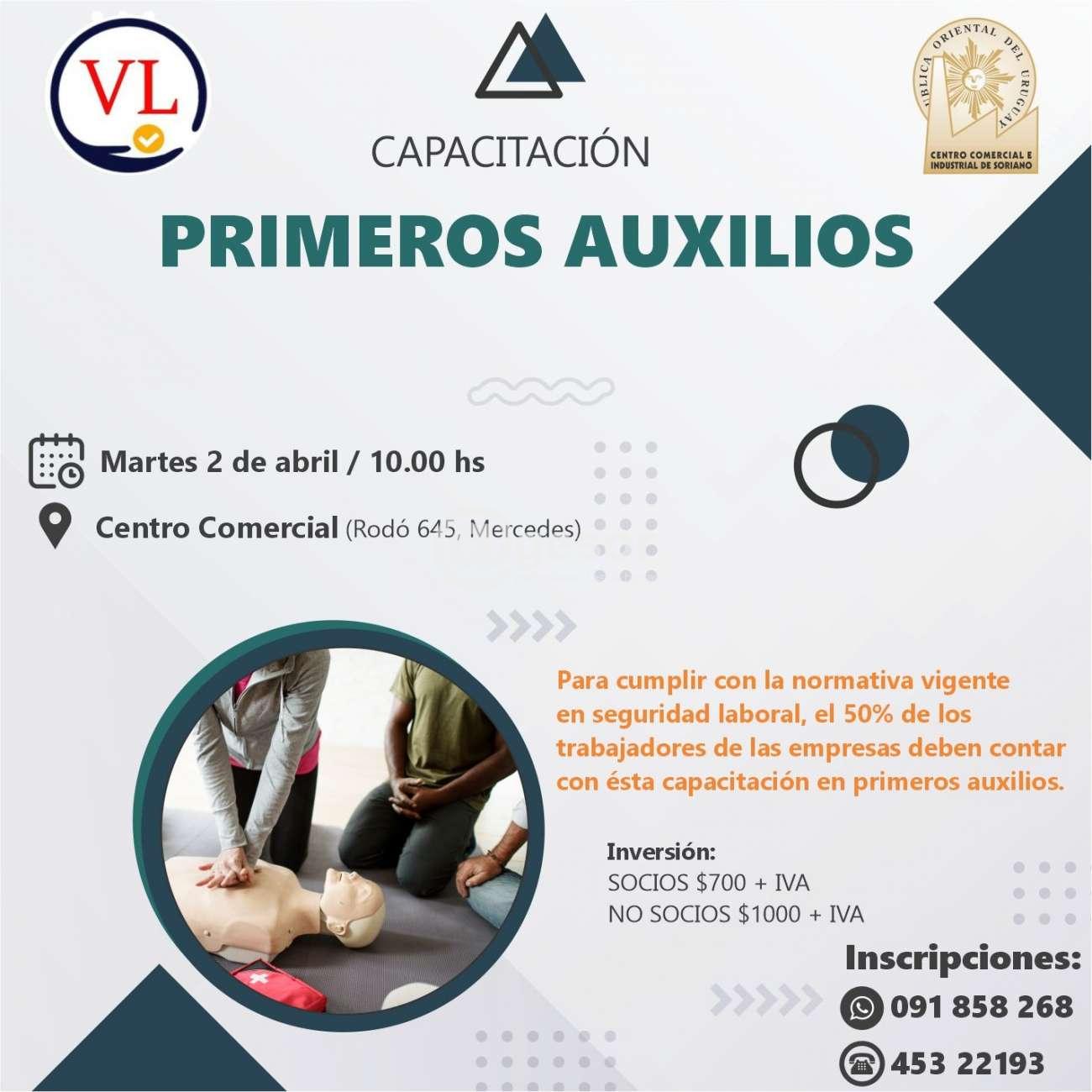Será el martes 2 de abril a las 10.00 horas, en Centro Comercial, Rodó 645 de Mercedes para cumplir con la normativa vigente en seguridad laboral, el 50% de los trabajadores de las empresas deben contar con esta capacitación en primeros auxilios.