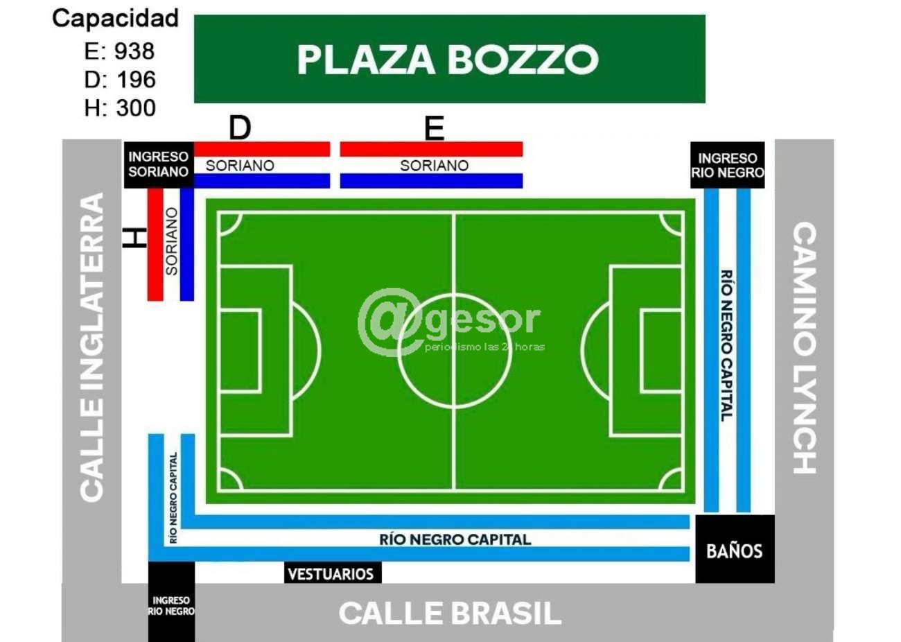En el caso de la afición que acompañará a la Selección de Soriano Capital (Mercedes) la organización en materia de seguridad y prevención determinó que estará ubicada en dos sectores, uno con capacidad para 938 espectadores y otro para 196 ubicados teniendo a sus espaldas la plaza Bozzo, mientras que el restante será en un costado de la cabecera que da a calle Inglaterra con 300 entradas.